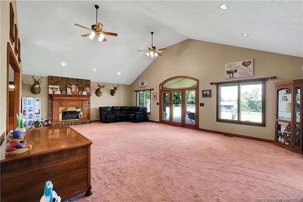 A rare opportunity to own 55-acre cattle/horse farm in the heart of Southern Indiana. The custom-built 4-bedroom, 4-bath home spans 3,682 square feet, with solid wood doors, beautiful hardwood floors, wide hallways, and abundant natural light. The main level features a spacious kitchen with extensive cabinetry, a large primary suite with jetted tub, double sinks, walk-in closet, and panoramic views of the property. A full walkout basement offers another 3,682 square feet of unfinished space -- ready for extended family, storage, or future expansion.