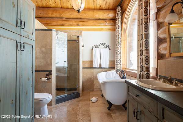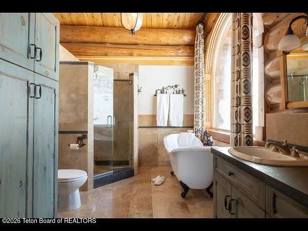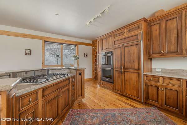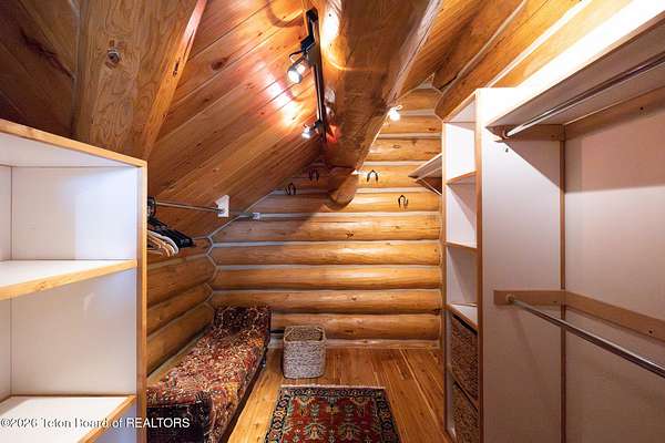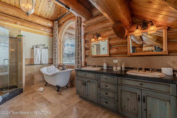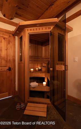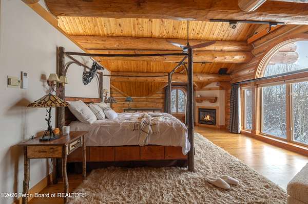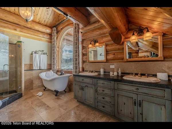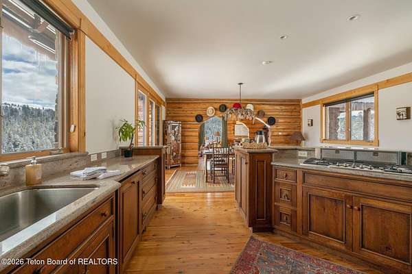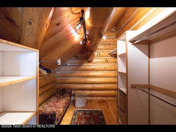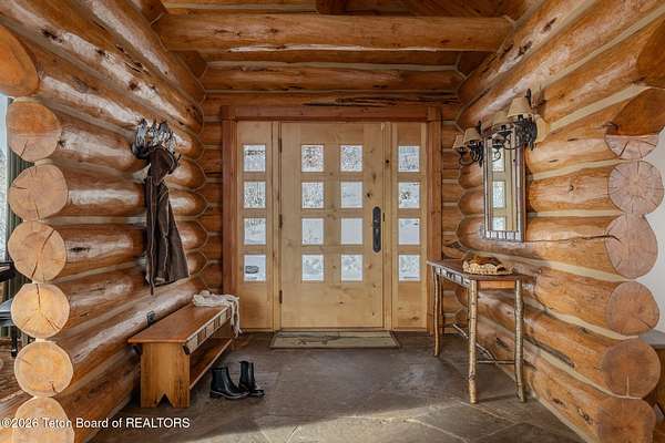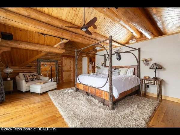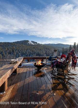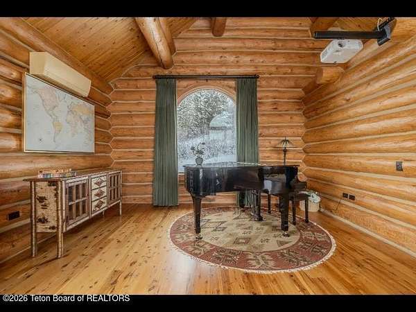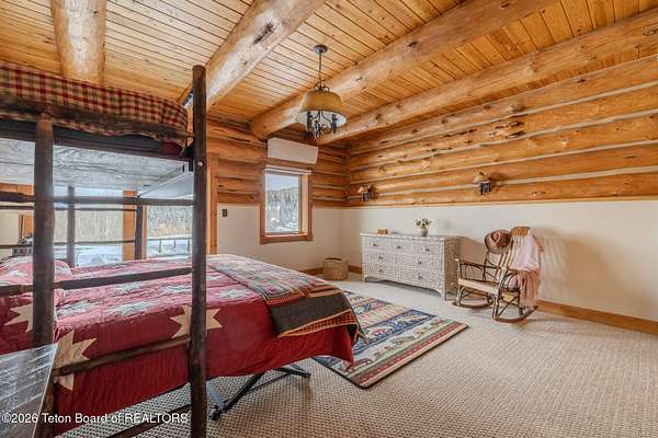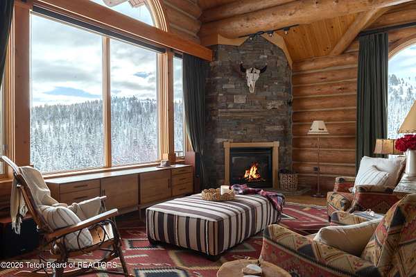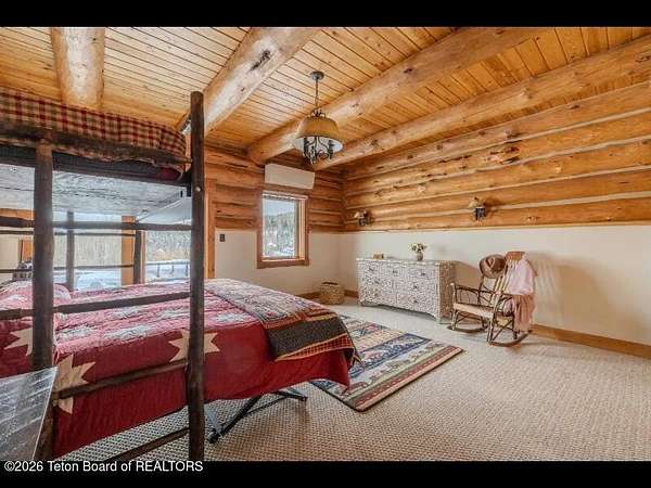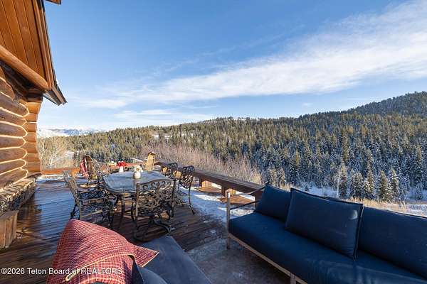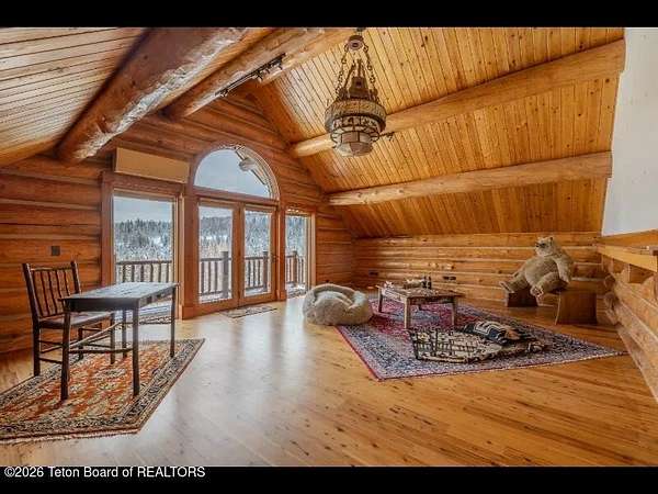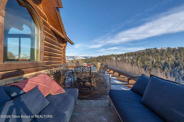 Set on 7.94 private acres in the rural Hidden Hills neighborhood, this classic Jackson Hole log home enjoys a lovely setting with elevated views, sagebrush meadows dotted with wildflowers, aspen groves and willows that welcome Jackson's amazing wildlife. Bordering National Forest, the property offers outdoor enthusiasts easy access to untouched snow for backcountry skiing or quiet trails for hiking. The 3,900 sf home offers 2 bedrooms & 3 bathrooms. Two bonus rooms may be used for additional sleeping space or a variety of other functions: office, recreational room, art studio, gym, etc. Enjoy in-floor radiant heat & ac, vaulted ceilings, a gas fireplace & a screen & projector for movie night. Other highlights include a pantry, laundry room & sauna. Located just 20 min. from Wilson