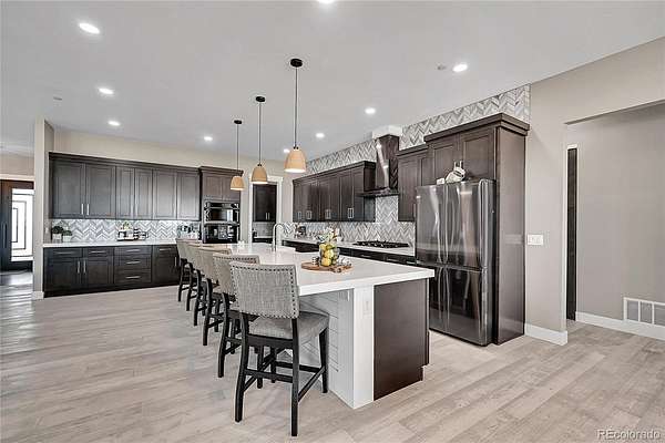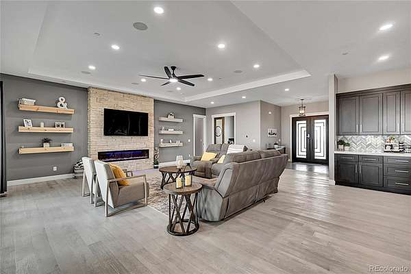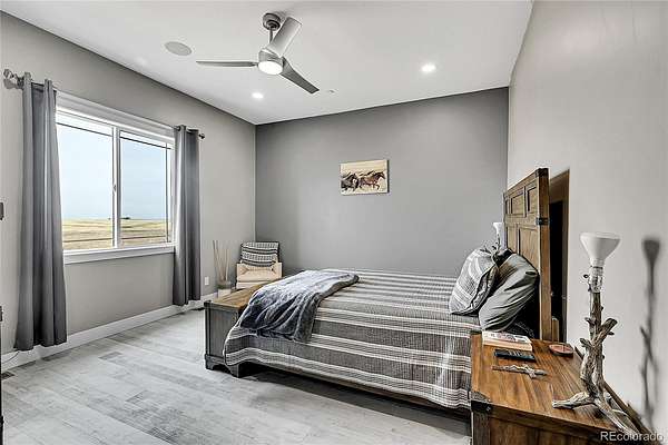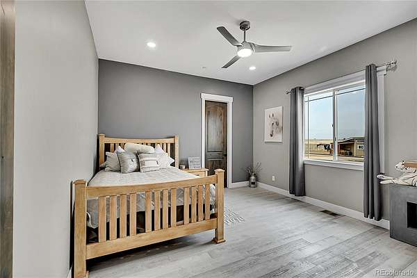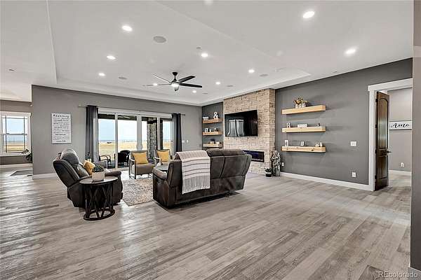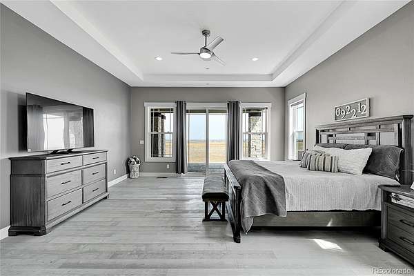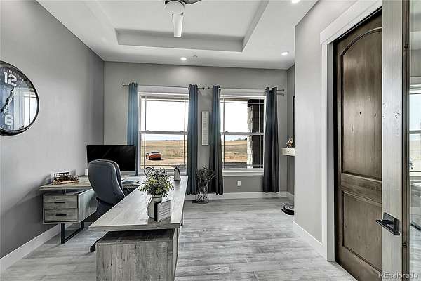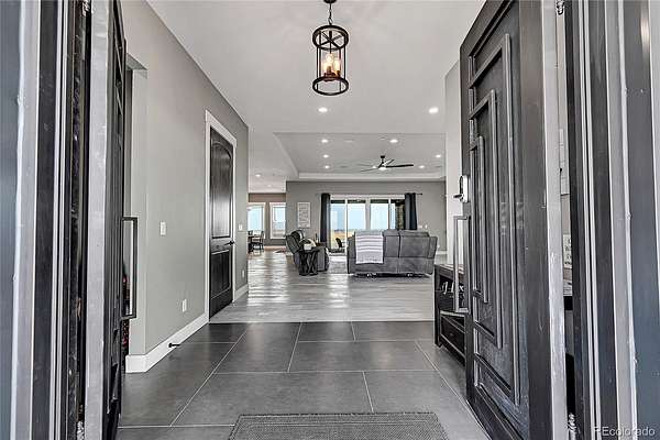 Rare 35+ Acre Custom Estate with Mountain Views! This newly built 2023 custom estate listed at APPRAISED VALUE sits on over 35 private acres and offers a rare combination of luxury, seclusion, and unobstructed panoramic views of the Rocky Mountains and Eastern Plains. Designed for the discerning buyer, this home is a true showpiece—crafted with premium finishes and built to impress. Featuring 5 spacious bedrooms and 7 bathrooms (5 full, 2 half), each bedroom offers its own walk-in closet, and three are full en-suites. The secluded primary suite is a retreat of its own, complete with a private patio, dual walk-in closets, and a spa-style bath with a 4-head walk-in shower. With 11-foot ceilings and floor-to-ceiling panoramic windows, the main living spaces are open, light-filled, and perfectly designed to frame the surrounding beauty. The gourmet kitchen is both stylish and functional with luxury cabinetry, a dramatic 14-foot island, and sleek black stainless appliances. Downstairs, the expansive lower-level living room with wet bar is ideal for entertaining, and a dedicated home gym makes wellness effortless. Two laundry rooms—one on each level—add convenience, while dual heating and cooling systems ensure year-round comfort. The home is prewired for a full smart home system, including sound and security. Enjoy over 1,000 square feet of covered patio space for indoor-outdoor living, plus a private outdoor bathroom, perfect for entertaining or future pool plans. There’s ample space for horses, recreation, or even a second residence*. This is more than a home—it’s a lifestyle. Luxury properties with this level of land, privacy, and quality are few and far between. Act quickly to secure your private tour before it’s gone.