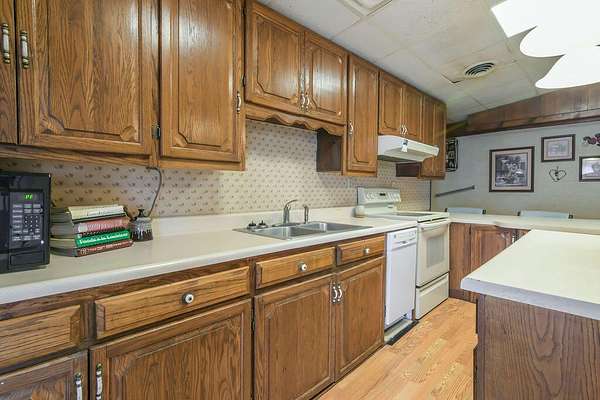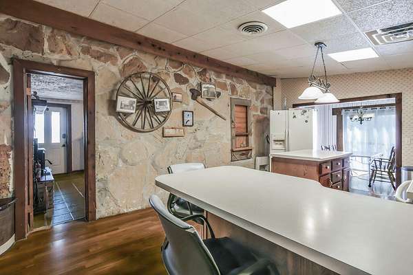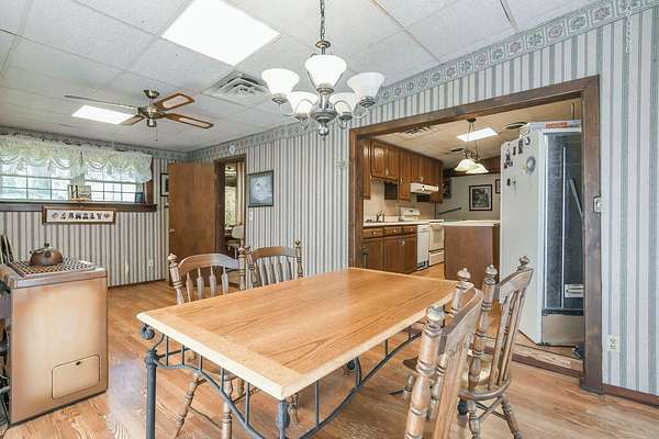 Welcome to Flat Creek, a stunning farm where opportunity meets tranquility! Imagine owning picturesque creek frontage that borders both the lush hay bottom and the serene back of your property. Picture-perfect, open pastures and a thriving hay bottom set the stage for your agricultural dreams. Discover eight glistening ponds, two of which are naturally spring-fed, adding to the property's allure. Beyond the pastures, a beautiful wooded acreage beckons wildlife enthusiasts. Observe deer, turkey, roadrunners, ducks, and geese in their natural habitat - a true nature lover's paradise. This farm offers the perfect blend of productivity and recreation. Graze your cattle on the verdant pasture and harvest a bountiful hay crop to keep them fed. The farm home features a flexible layout with potentially four bedrooms, one bathroom, a formal dining room for gatherings, and a large storage room for all your needs. Enjoy peace of mind knowing the roof was replaced in November 2024, along with a newer water heater and water softener. Relax and soak in the breathtaking views from the inviting, covered front porch. Two outbuildings provide ample space for your equipment and projects: a 44 X 29 shop building and a substantial 49 X 41 equipment and implement building. This is a rare opportunity to own a piece of Flat Creek paradise, priced below a recent as-is appraisal. Don't miss your chance to see this exceptional property! Showings are by appointment only. Contact your Realtor today to schedule your private tour.