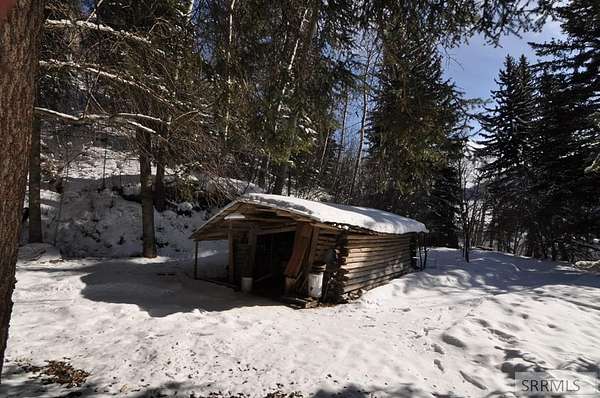 Unique property now available just a stones throw from the Snake River and Palisades reservoir. The home is tucked into the hillside and somewhat hidden in the surrounding aspens & pines. This is a 2 bedroom, 2 bath home with a bonus room on the upper level that can be used as a bedroom. There are additional structures on the approximate 9+ acre property that make this especially unique. One is a 1700 sq. ft. living quarters built in 1956 that can be renovated for a rental or guest quarters. There is another smaller building that is a small one room cabin with knotty pine wall covering and hardwood floors, that could also be renovated for a guest house. There is an old log storage shed for firewood and a larger shop for additional storage for toys, etc. The metal roof was replaced in 2015 and the water heater has been replaced. Water is supplied by a spring on the hillside and has 3 separate water rights for the property