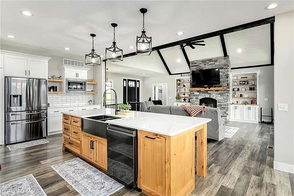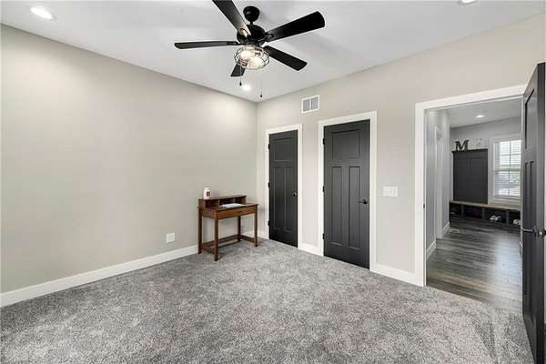 - Ceiling Fan(s), Custom Cabinets, Kitchen Island, Painted Cabinets, Pantry, Vaulted Ceiling(s), Walk-In Closet(s)