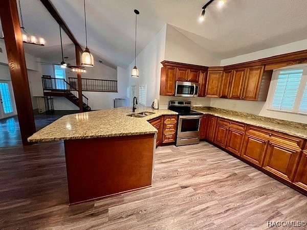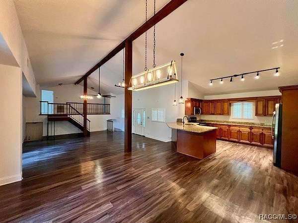 Est $2,918/moBring all offers! Beautiful home on 2 1/2 acres in desirable area. This 3 bedroom/2 bath home is both unique and beautiful. It boasts a huge living room/kitchen area with vinyl plank flooring and towering ceilings. The kitchen and bathrooms have upgraded cabinets and granite tops. There's a screened in front and back porch as well as a 2 car front garage and a 1 car back garage, plus a brand-new roof was installed in 2023. The property is partially fenced in. This one-of-a-kind property is a must see so schedule your showing today!