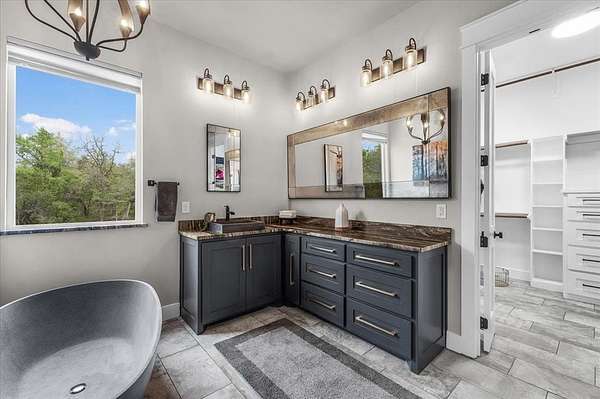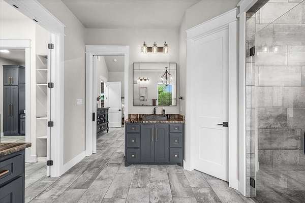- Chandelier, Decorative Lighting, Double Vanity, Granite Counters, High Speed Internet Available, Kitchen Island, Natural Woodwork, Open Floorplan, Pantry, Smart Home System, Sound System Wiring, Vaulted Ceiling(s), Walk-In Closet(s), Wet Bar
