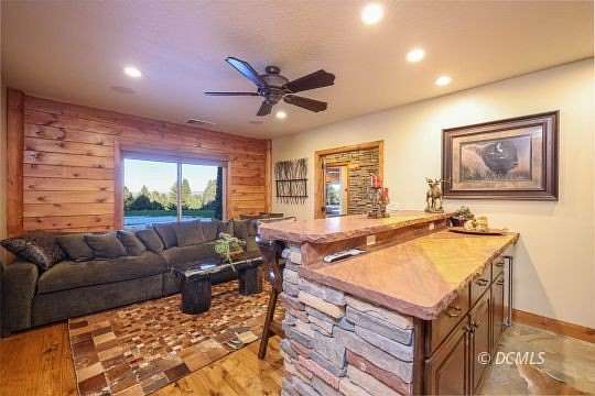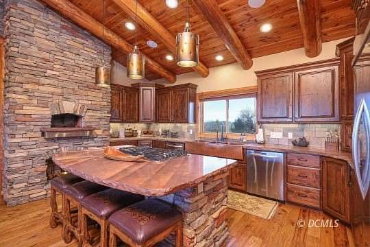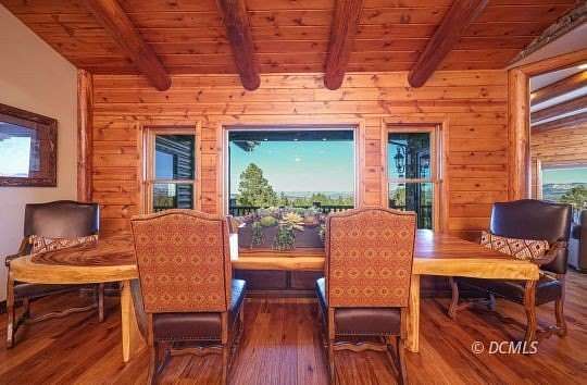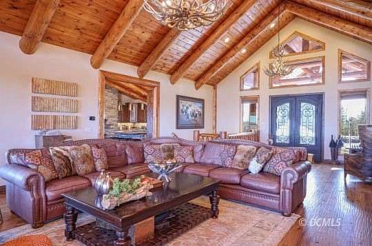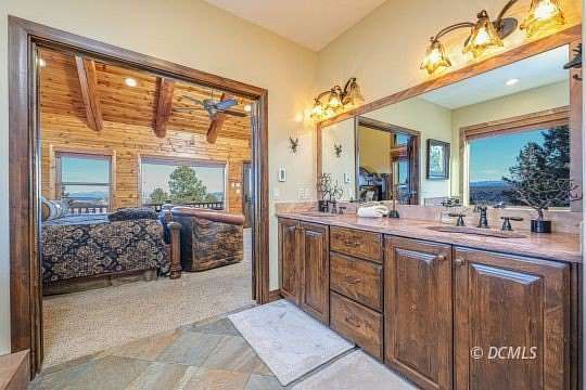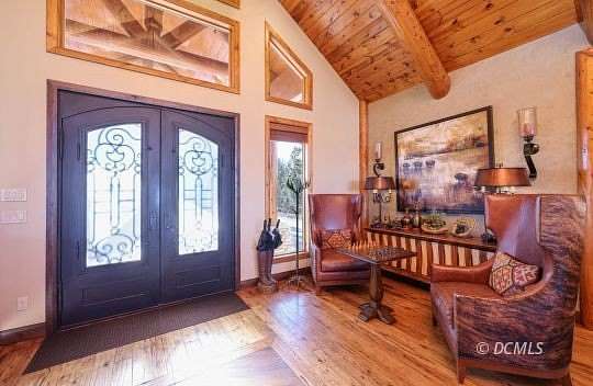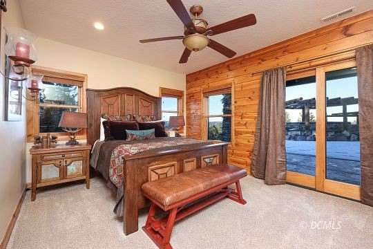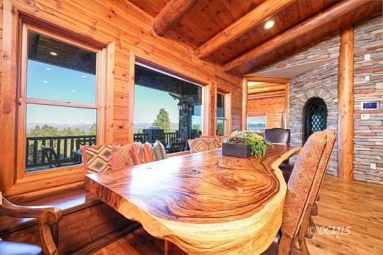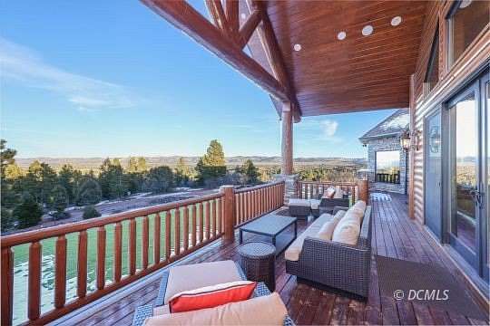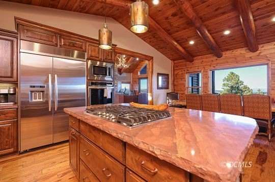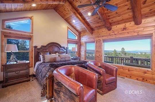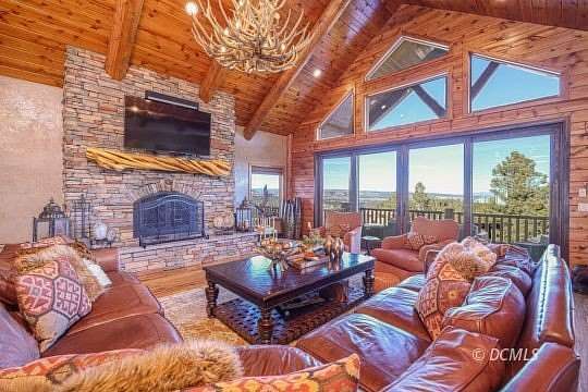 Set on an expansive 8.82-acre mountain estate in the coveted Elk Ridge community, this master-crafted luxury cabin offers an exceptional blend of refined craftsmanship, privacy, and sweeping alpine views. With nearly 6,000 square feet of beautifully finished living space, the residence features five bedrooms, six bathrooms, and a thoughtfully designed walkout lower level ideal for entertaining, or hosting large gatherings. Vaulted wood ceilings, stone accents, hardwood and tile flooring, multiple fireplaces, and dramatic picture windows create a warm yet elegant mountain atmosphere throughout. The gourmet kitchen is complemented by high-end appliances, granite surfaces, and custom cabinetry, while a private theater room, wine storage, and spa-inspired baths elevate everyday living to a resort-level experience. Outdoor living is equally impressive with covered decks, patios, spa, pond, mature trees, and unobstructed mountain and valley views. A four-car attached garage and ample acreage complete this rare offering. This extraordinary property represents a premier mountain retreat for those seeking privacy, scale, and timeless luxury in Southern Utah's most desirable alpine setting.