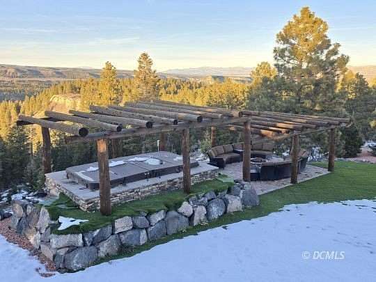 - All Year Access, Covered Patio, Deck(s) Covered, Deck(s) Uncovered, Gutters & Downspouts, Outdoor Lighting, Partial Fenced, Partial Landscape, Pond, Pool, Trees, Uncovered Patio, View of Mountains, View of Valley