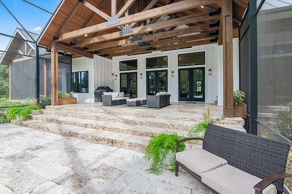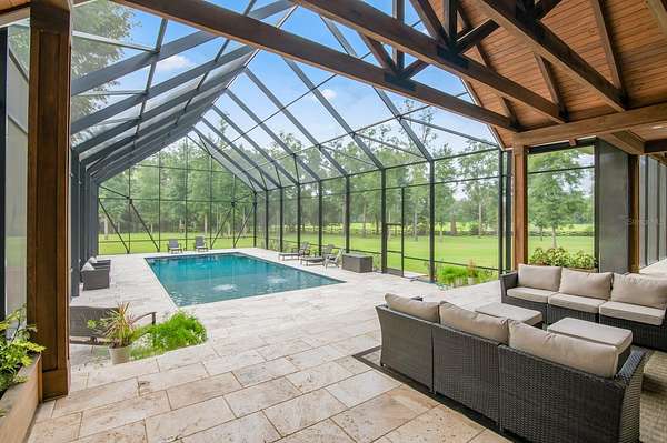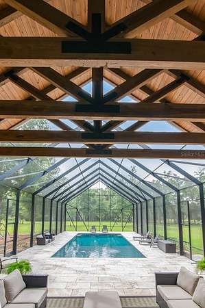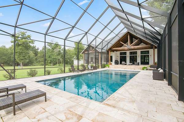 Step outside to your own private paradise: a screened saltwater pool with hand-built cypress trusses and extensive travertine decking--perfect for year-round enjoyment. Additional features include two tankless water heaters, full-house generator hookup, Central vacuum system and water softener. Four-car garage, large underground propane tank and Horse-friendly property. This home offers a rare blend of luxury, functionality, and space--truly a must-see.