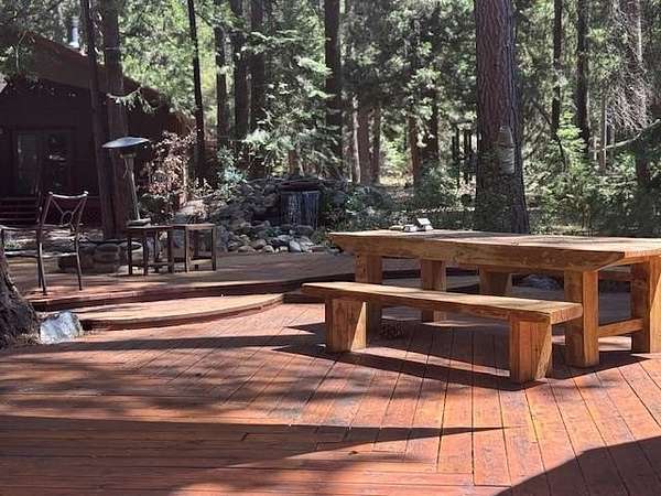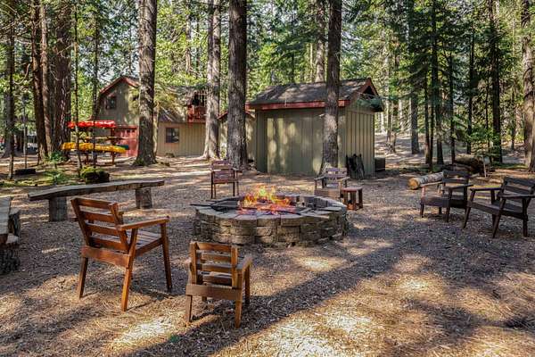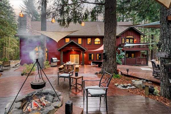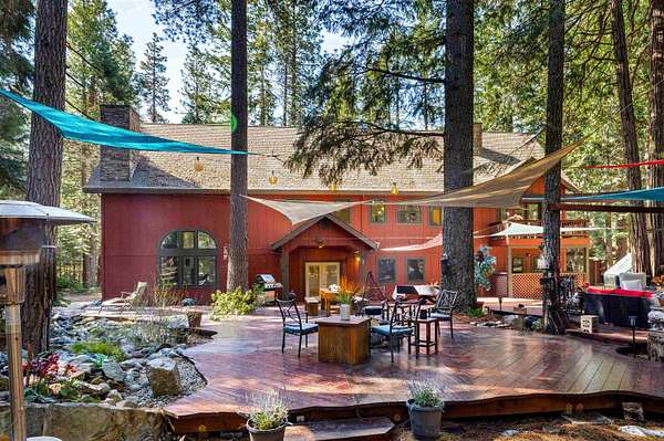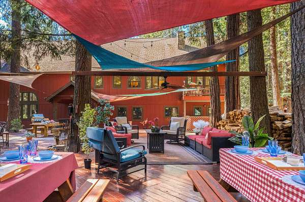 Looking for that cabin retreat? This 17 acre forested property is a compound with multiple living quarters. Sporting an incredible outdoor gathering space, large fire pit, snow board shack, RV hookup and more. This would be an ideal second home for family gatherings or an income producing property for short or long term rentals. There is enough land and the county has policies that would approve a parcel split into 4- 4 acre parcels. This just might make the price doable for a contractor, developer or energetic entrepreneurial individual. Come check out the buildings, take a walk in the forest or sit on the deck and listen to the waterfall pond. Envision your family sitting by one of the cozy fireplaces or sitting outside by one of the firepits. This is glamping at its finest:) *New well pump.*Septic inspection *3000+ sq ft deck was refinished summer 2025 *Recent Cal-Fire Defensible Space Report and all suggestions and requirements complete. * Current short term rental license, which is proving to be quite lucrative. New owner would need to address with county as the permit cannot transfer, but appears that it would easily be approved as all requirements have been met.