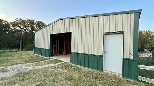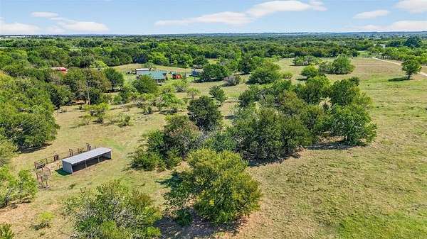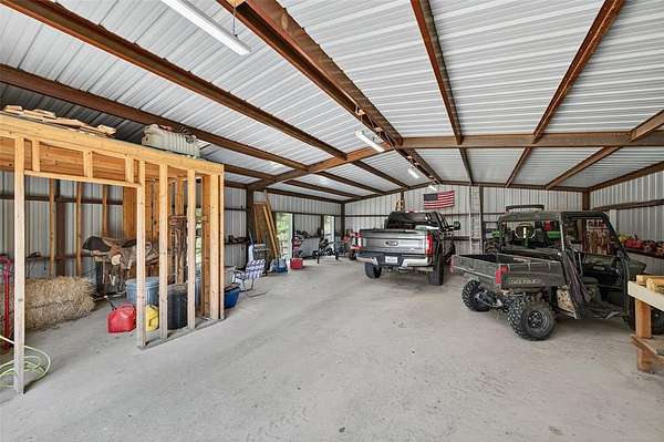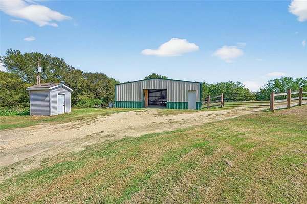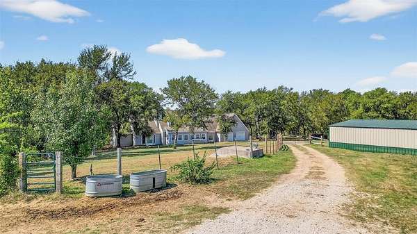 Two gated entrances welcome you onto the property, where you'll find a brand-new 200 amp, 1,575 sq. ft. barn built in 2021, ready for your hobbies or equipment. There is a well, and barn has water supply, concrete slab, and all power is underground from the pole. The land is dotted with mature trees, livestock shed and working chutes, rolling hills, rustic charm and wide-open spaces, providing a beautiful setting to breathe in fresh country air and enjoy starlit nights on the covered patio or around the fire pit.