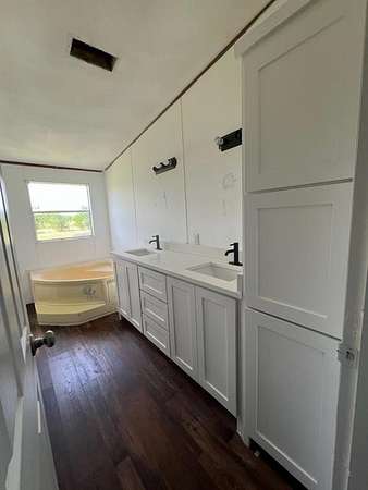 Est $2,722/moWell located tract with beautifully updated double-wide manufactured housing. Fully remodeled with granite counter tops and new bathrooms. NO OWNER FINANCING.