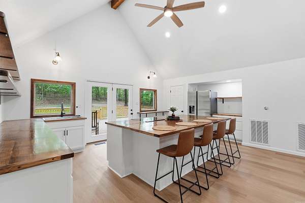 Welcome to your own private slice of Arkansas paradise! Nestled on 14 acres of beautiful, wooded land, this fully remodeled country home offers the perfect blend of comfort, style, & outdoor living. Featuring 6 spacious beds & 3 updated baths, there’s room for everyone. Step inside to a stunning living room w/ soaring vaulted ceilings, & a floor-to-ceiling stone fireplace that creates a warm, inviting centerpiece. The kitchen is a true showstopper with beautifully crafted countertops made from locally sourced wood, new appliances, & picturesque views of the surrounding trees. The primary suite offers a private retreat w/ its own dedicated laundry area, w/ an additional laundry space downstairs adds convenience for everyday living. Downstairs enjoy the 2nd fireplace, bonus space w/ 3 beds & 1 bath Extensive updates include new LVP flooring, roof, siding, windows, gutters, septic, plumbing/lighting fixtures, & a French drain. The brand-new deck is the perfect spot to relax & take in the scenery. Outside, enjoy a 20x30 shop ideal for hobbies or workspace, plus plenty of room to explore or even deer hunt right in your own backyard.