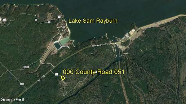 Est $307/moNestled just off HWY 255 on County Road 51, this rare gem is mere minutes away from the serene Lake Sam Rayburn and Angelina River, all while being enveloped by the majestic embrace of National Forests. Unrestricted land spanning 1 acre and over 111 ft of road frontage beckons with endless possibilities, a true find not easily stumbled upon in today's world. Embrace the tranquility of nature with community water and electric readily available to bring your dream escape to life amidst this paradise. With a prepared dirt pad awaiting your touch, seize this opportunity for boundless creation amidst pure serenity. LESS THAN 2 MILES FROM LAKE SAM RAYBURN!