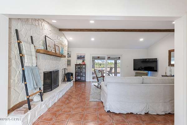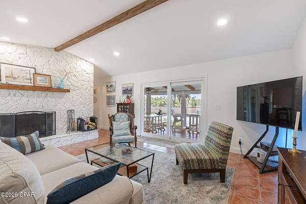 - Beamed Ceilings, Fireplace, High Ceilings, Recessed Lighting, Smart Thermostat