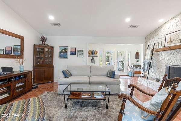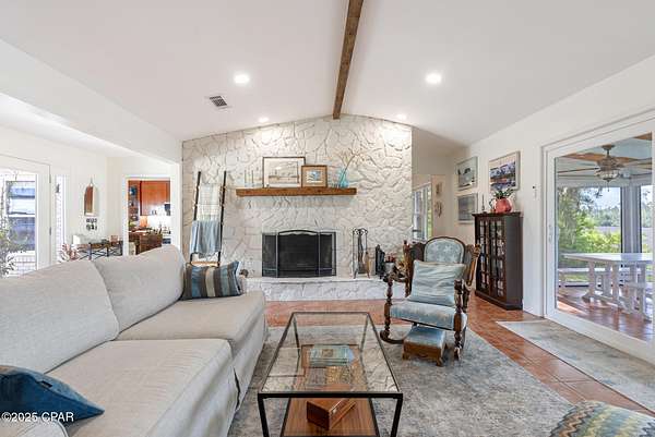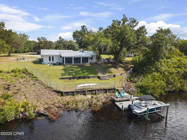 PRICED BELOW APPRAISED VALUE Welcome to your own slice of paradise on Cook's Bayou. A rare opportunity to own a beautifully updated 3-bedroom, 2-bathroom brick home with gulf access, nestled on 5 serene acres adorned with moss draped oaks, lush herb gardens, and a private pond.Originally built in 1976 and thoughtfully renovated over the years, this 1,855 sq ft home offers a perfect blend of vintage character and modern amenities. Step inside to a light and airy interior featuring fresh paint, quartz countertops, new ceiling fans, and closet organizers throughout. The entire master bath has been fully remodeled, and the kitchen is a chef's dream with induction cooktop, double ovens with convection and air fryer modes, and like-new stainless appliances (all less than 3 years old).Rest easy knowing key upgrades have already been completed, including asbestos abatement, popcorn ceiling removal, a 2024 HVAC system, Honeywell programmable thermostat, Pristine Air UV filter, water softener system, and generator outlet for peace of mind. The home also features a 2017 metal roof, hurricane ties for wind mitigation, and a whitewashed brick exterior that adds timeless curb appeal.Outside, the upgrades continue with a solar-powered entrance gate, 12'x32' shed, motorized porch screen to fully enclose the back porch, raised metal garden beds, citrus trees, and room to expand or just enjoy the quiet of your surroundings.Boaters will love the nearly $30,000 in upgrades to the expanded dock, including a 7,000 lb. boat lift, offering seamless access to the Gulf from your backyard. And for those who like to work the land, a John Deere tractor and attachments are included with the purchase.Whether you're looking for a private waterfront homestead, a peaceful retreat, or a place to build your future, this one-of-a-kind property on Cook's Bayou has it all.This property has Gulf access through Cook's Bayou. The bridge has a vertical clearance of 9 ft 6 inches. The home sits on tidal waters, offering easy access for smaller boats and a scenic waterfront lifestyle.