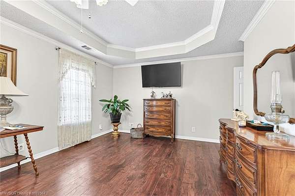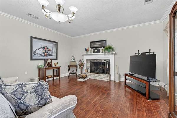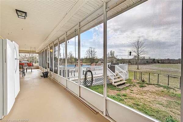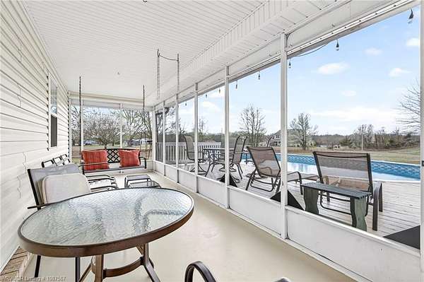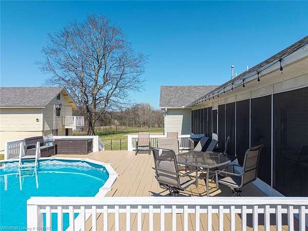 One-owner custom built home on 4 beautiful acres offering nearly 3,000 heated square feet of comfortable living space! This well-maintained property features a split floor plan with three oversized bedrooms and 2.5 baths, plus a fourth room with a closet that could easily serve as a bedroom, office, hobby room, or exercise space. The spacious kitchen offers an abundance of solid oak cabinetry, quartz countertops, an updated McCormick tile backsplash, and newer appliances, making it perfect for everyday living and entertaining. The living room features a cozy woodburning fireplace, while the den provides a second living area with an electric fireplace that also offers supplemental heat. Most of the home features durable vinyl plank flooring, with ceramic tile in the kitchen, bathrooms, utility room, and office. One bedroom offers hardwood flooring. The additional flex room includes built-ins and could serve multiple purposes depending on your needs. The second living area features three closets and an exterior door, making it an excellent option for a home office or additional living space. All bedrooms include walk-in closets, and the spacious primary suite offers two large walk-in closets. The primary bathroom features dual vanities with undermount sinks, quartz countertops, and a walk-in shower. Both full bathrooms include relaxing whirlpool tubs, while the half bath features a freestanding sink. Outdoor amenities include an 18x30 above-ground oval swimming pool with liner replaced approximately five years ago and pump replaced approximately two years ago. A wooden deck surrounds half of the pool and was recently painted. The 12x14 screened-in sunroom with porch swing overlooks the pool and acreage, creating the perfect place to relax and enjoy the peaceful setting.