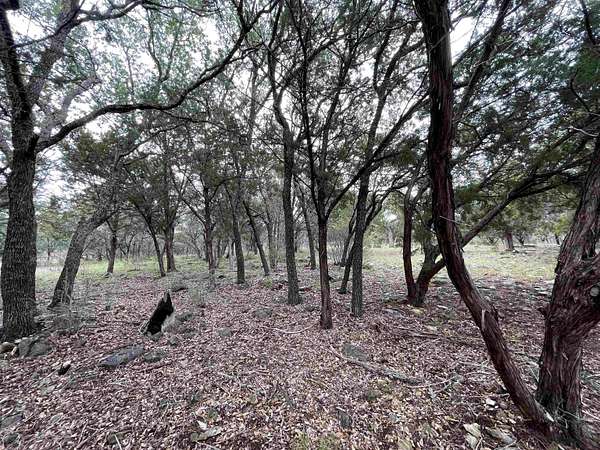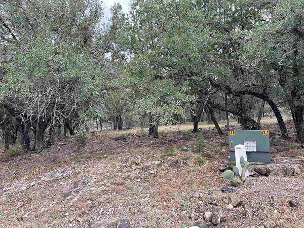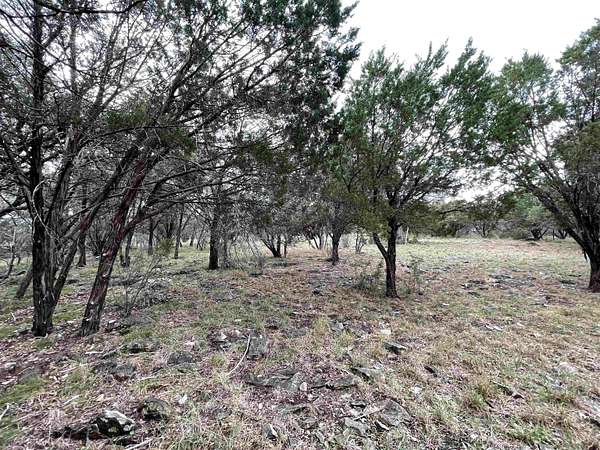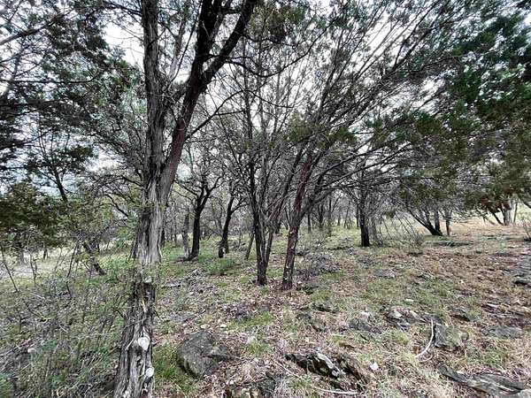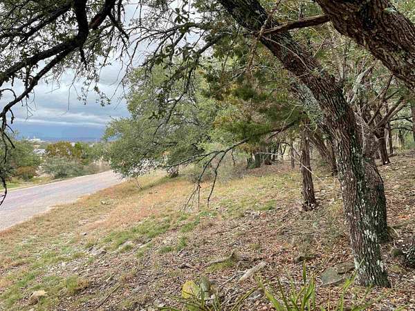 In Horseshoe Bay on 2147, turn on to Clayton Nolen Drive and proceed up the hill. Veer left on to Air Park, turn right on to Quick Draw. Curve left at the bottom of the hill. Lot is on the left across and just past white rock house.