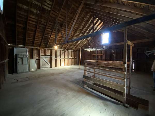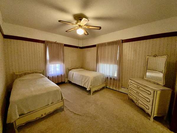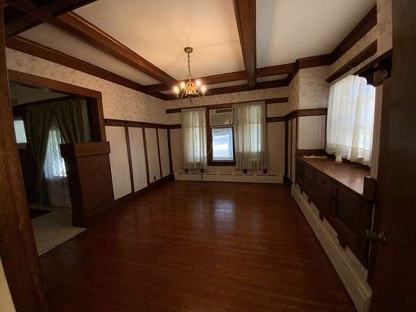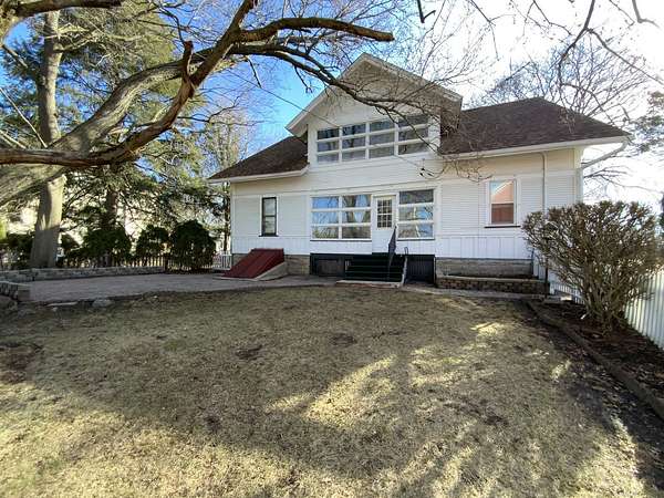 Rare opportunity to own a spacious in-town property offering 2.39 acres, versatile outbuilding with upstairs loft/4 car garage-combining the charm of small-town living with room for hobbies, storage, workshop, upstairs loft and future expansion. Inside the home, original woodwork adds warmth and character throughout. The welcoming enclosed front porch leads into a spacious living room featuring built-ins and entry closet. The beautiful dining room is Craftsman/Prairie influence, features a coffered ceiling with beams, built-in buffet/sideboard, plate rail and wainscoting and hardwood floors. The galley kitchen offers a full wall of cabinets and storage along with a large eating area and pantry. The first floor features two large bedrooms connected by a Jack-and Jill bathroom, both with walk-in closets. Upstairs you'll find a third bedroom, full bath, walk-in closet, cedar closet, built in shelving, and an enclosed upper porch. Several large areas of unfinished space on second floor have potential for additional bedrooms/office/ storage. The basement includes laundry area, extra storage and outside entrance. There is also an enclosed back porch that leads to a brick patio and fenced yard. Great location, convenient access to local amenities, nearby towns and tollway. This unique property offers space, character and incredible potential in a peaceful small town setting.