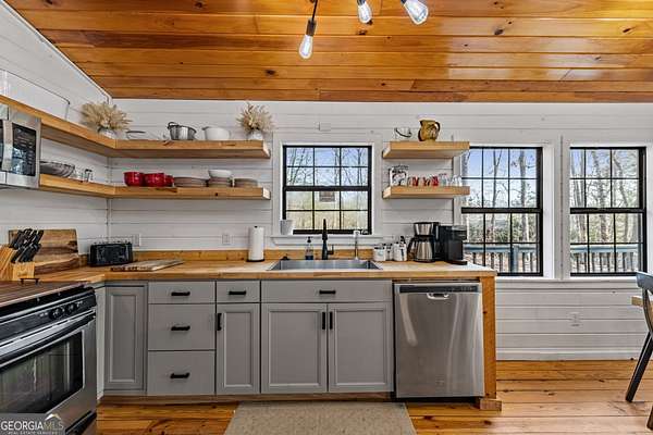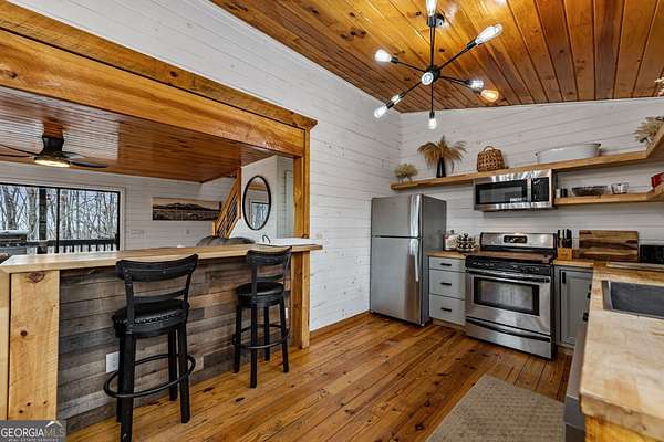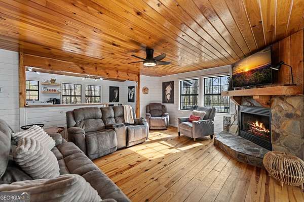 In a market where buyers are constantly searching for something truly special, this Blue Ridge retreat delivers a rare opportunity to own two mountain homes for one price with proven income. Privately tucked away on 2.34 acres at the end of the road, this newly remodeled property offers the privacy and mountain charm buyers hope to find, all just 8 minutes from downtown Blue Ridge. With all paved access, generous parking, and a peaceful wooded setting, it captures the perfect balance of convenience and escape. The main home is a beautifully updated 4-bedroom modern chalet with the warm, elevated feel today's buyers are drawn to. Rich wood accents, stainless steel appliances, granite countertops, and a thoughtful blend of tile and wood flooring create an interior that feels both refined and inviting. At the heart of the home, the stone fireplace brings warmth and character in all the right ways, anchoring the living space with that cozy mountain atmosphere that makes Blue Ridge so desirable. Expansive covered decks and outdoor living areas complete the experience, creating the perfect setting for quiet mornings, relaxed evenings, and memorable weekends in the mountains. Adding more appeal is the separate 1-bedroom guest home, beautifully finished and full of possibility. Ideal for hosting family and friends, creating a private retreat, or expanding short-term rental options, it brings a rare level of versatility to the property. Rent them together or keep them separate-both homes generate strong income on their own, each with its own proven rental performance. That kind of flexibility is what makes this offering especially compelling for both second-home buyers and investors looking for a property that delivers lifestyle appeal and income potential. For buyers seeking a luxury mountain getaway, full-time escape, or STR investment, this rare Blue Ridge property offers privacy, style, flexibility, strong income potential, and a setting that is hard to duplicate.