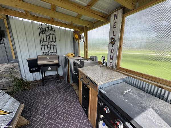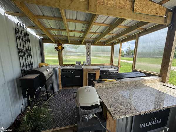 YOUR DREAM PROPERTY AWAITS! Experience the perfect blend of country charm and modern comfort with this stunning 3-bed, 2-bath home on 2.76 acres m/l. From the large lawn to the gorgeous scenic views, this property welcomes you with warmth and style. Inside, the main level features all bedrooms, 1 & 3/4 baths, main-floor laundry, and a spacious living room with great natural light and generous closet space. The kitchen boasts rich hickory cabinetry and a functional layout. Downstairs, the partially finished basement provides extra space for storage, hobbies, or future expansion. But the star of the show is the 56x40 fully insulated shop--transformed into a sports enthusiast's dream with a full bar, kitchenette, bathroom, and efficient mini-split heat and air. Enjoy the outdoor kitchen complete with built-in grills and granite countertops--ideal for entertaining! 1/2 the shop is still perfect for garage space, work area or boat storage. Camper hook up available! This one-of-a-kind property offers peaceful living and unmatched amenities. Call and set up a viewing TODAY!