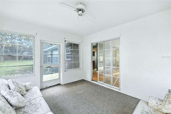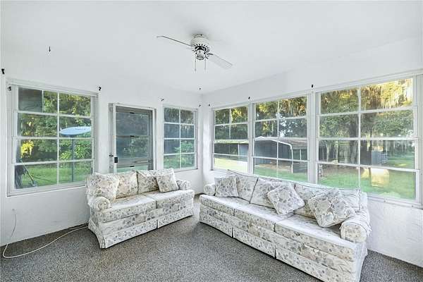 Experience the perfect blend of comfort, recreation, and natural beauty with this 3 bedroom, 2 bathroom lakefront retreat in the heart of the Ocala National Forest. Nestled on 3 private acres, this custom-built 1,304 sq ft concrete home features tilt-up precast wall construction, designed to withstand wind loads over 110 mph, ensuring both durability and peace of mind. Step inside to enjoy spacious living areas, or relax in the breezy screened room overlooking your very own slice of paradise. Outside, take in over 200 feet of wooded frontage on the breathtaking 750-acre Lake Bryant--perfect for fishing, skiing, boating, or simply soaking in the stunning views. A private boardwalk leads you to your dock and boathouse, offering endless opportunities for waterfront enjoyment. Additional features include a refreshing above-ground pool, 21x33 pole barn, workshop, shed, and a 2-car garage. With rich black soil ideal for gardening or pasture, this property offers both recreation and practicality. Conveniently located just one hour from Daytona Beach, Orlando, and Gainesville, this lakefront gem is ready to become your forever escape!