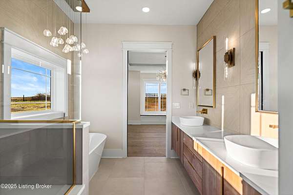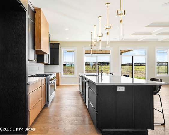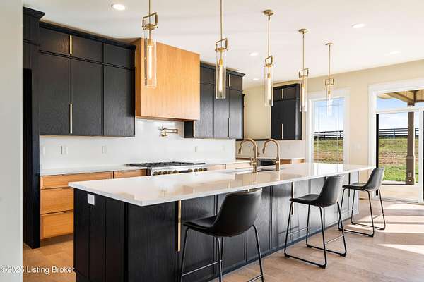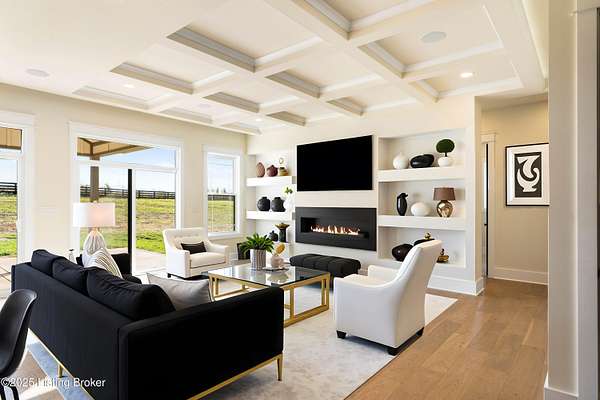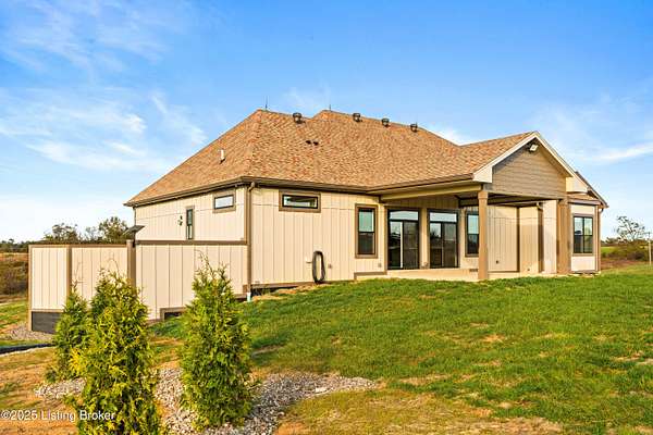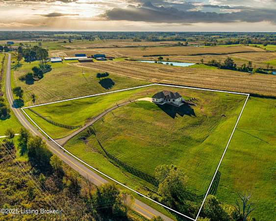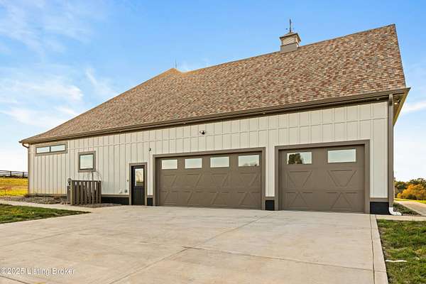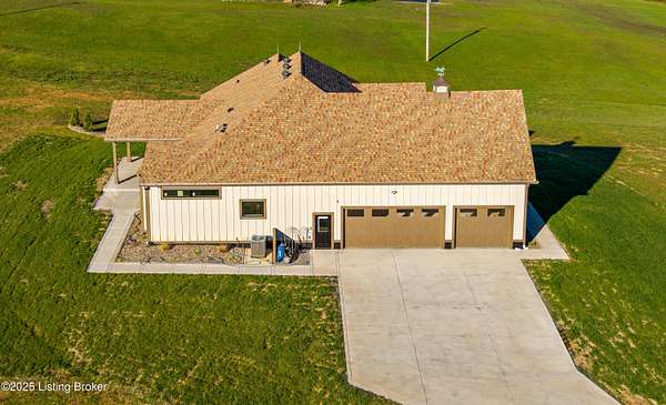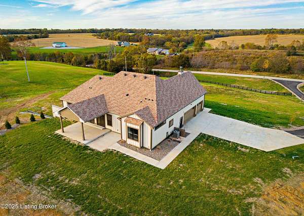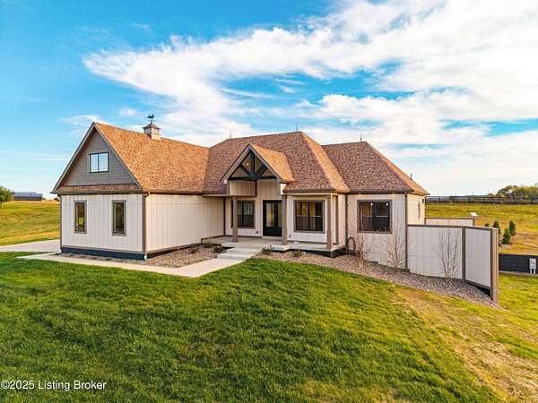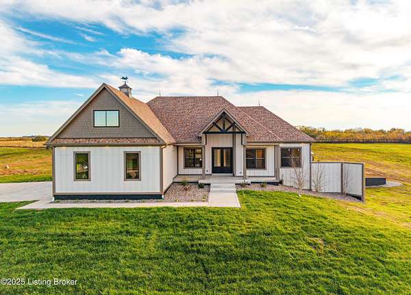 Luxurious 1.5-Story Estate on Over 5 Acres in Bagdad, Kentucky Where Modern Comfort Meets Timeless Country Elegance Experience the best of modern country living in this exquisite new-construction estate, gracefully set on over five acres of peaceful Kentucky countryside. Thoughtfully designed and masterfully crafted, this home embodies timeless elegance, upscale finishes, and effortless comfort throughout. Offering more than 6,250 square feet of finished living space, this 1.5-story residence features 5 spacious bedrooms, 4.5 baths, and a fully finished walkout basement designed for elevated entertaining and relaxed everyday living. Main Level Highlights The main level showcases an airy open-concept design highlighted by engineered European white oak flooring, custom cabinetry, designer lighting and quartz surfaces throughout. The gourmet kitchen is a chef's dream featuring over 35 feet of quartz countertops, premium GE Monogram stainless-steel appliances, an oversized island, and a walk-in pantry. A wet bar and beverage center make entertaining effortless, while the great room impresses with a 60" gas fireplace and a 75" Samsung Picture Frame TV. The primary suite provides a serene retreat with a spa-inspired bath, dual vanities, soaking tub, and a walk-in shower, complemented by a generous custom closet. A first-floor laundry with built-in cabinetry and quartz counters adds ease to everyday living. Upper & Lower Levels Upstairs, a beautifully appointed wet bar with a beverage center and built-in microwave creates a perfect spot for movie nights or entertaining. The walkout lower level expands the living experience with a complete second kitchen, bedroom and bath, and flex spaces a home theater, gym, or guest suite. A large safe room, dedicated utility room, and 98" Samsung TV with surround-sound theater system add both practicality and luxury. Outdoor & Structural Features Designed for both beauty and durability, the exterior showcases James Hardie Board & Batten siding, custom roof accents, and a Lifetime Class 3 architectural shingle roof system. Enjoy seamless indoor-outdoor living with a covered main-level patio equipped with gas service, ceiling fan, and 220V radiant heaters, plus a lower-level patio pre-wired and plumbed for a future outdoor kitchen. The property is completed with Kentucky Bluegrass sod, 4-rail fencing, and a concrete and asphalt drive leading to an oversized 3-car garage with 8' vertical-lift door and features a hot/cold hose bib for washing cars and pets. Modern Comforts & Smart Home Innovations include a hybrid HVAC system (heat pump with propane backup; 4 zones), 400-amp electrical service & underground utilities, Tankless gas water heater with recirculation, Whole-house water filtration system, Spray foam & fiberglass insulation package, Prewired full smart-home capability, Four exterior security cameras, and Starlink high-speed internet. Perfectly situated just minutes from Shelbyville and Frankfort, and within the Shelby County School District, this exceptional estate delivers the ultimate blend of rural tranquility, modern convenience, and refined living. This is more than a home it's a lifestyle. Every detail has been curated for those who appreciate craftsmanship, comfort, and cutting-edge technology in a serene country setting.