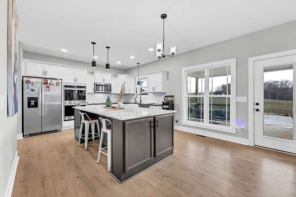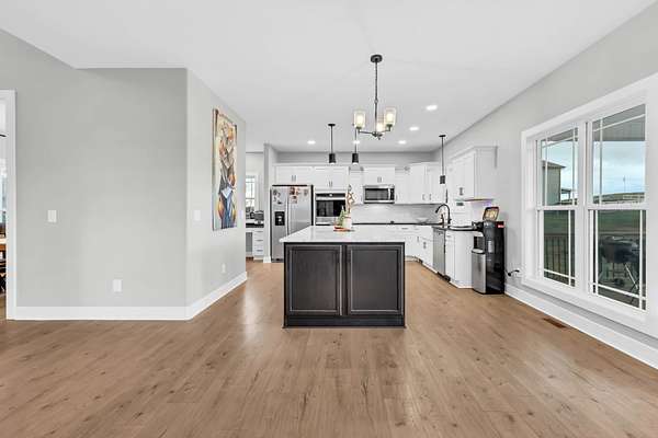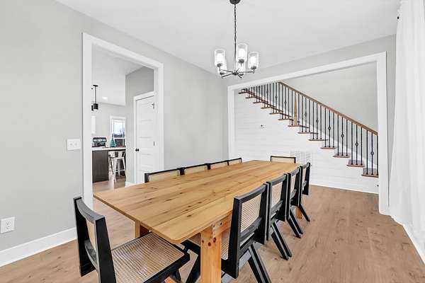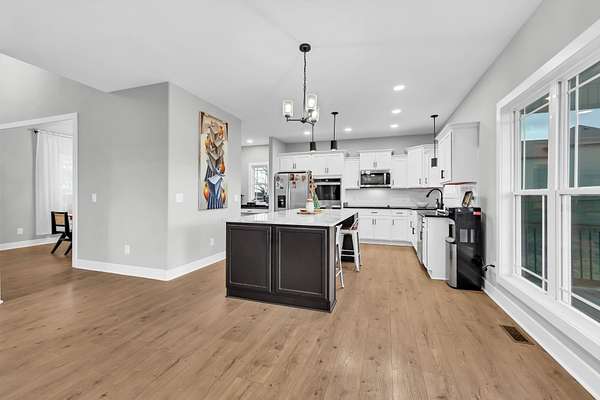 Step inside to a welcoming foyer that flows into a formal dining room, ideal for gatherings. The open-concept kitchen is the heart of the home, featuring an extra-large island, ample prep space, and an office nook--perfect for work, homework, or daily organization. The kitchen opens seamlessly into the main living area, complete with a cozy fireplace, creating the perfect space for entertaining or relaxing. A convenient half bath and hall tree are also located on the main level.