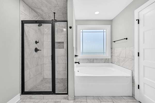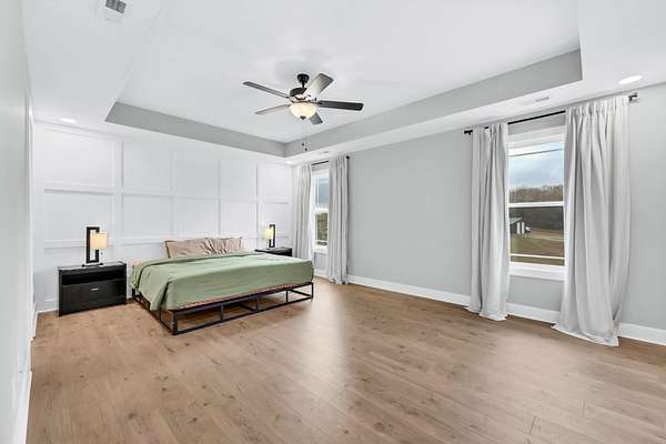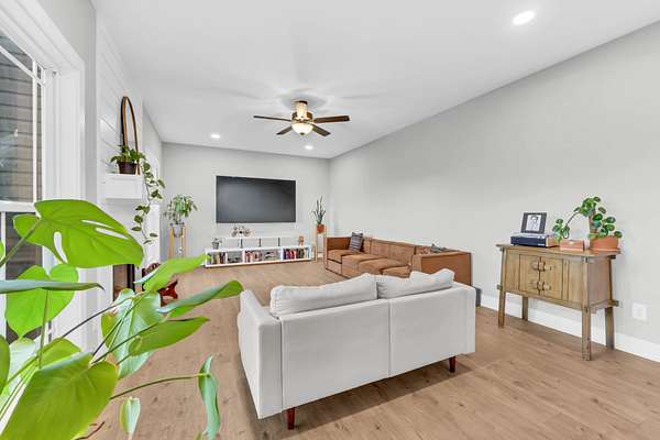 Upstairs, you'll find a spacious primary suite with a double trey ceiling, a luxurious en-suite bath offering a separate tub and shower, dual vanities, and a large walk-in closet. Three additional oversized bedrooms share a full bath, along with an upstairs laundry room for added convenience.