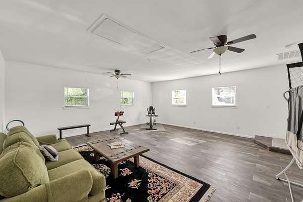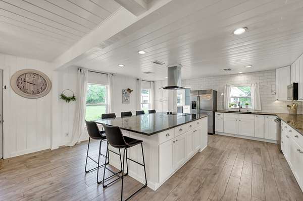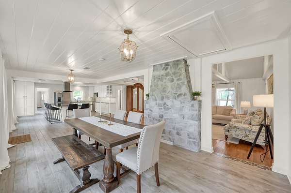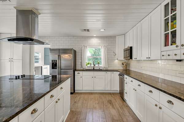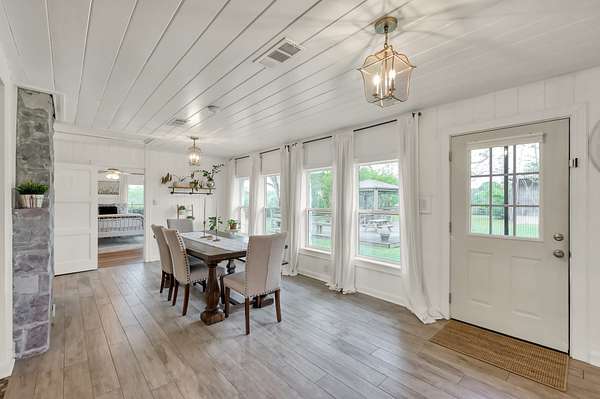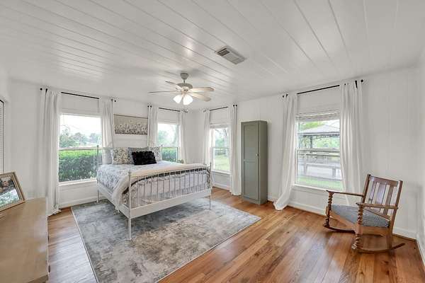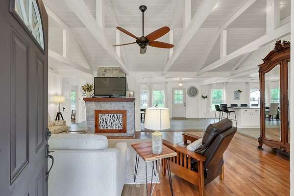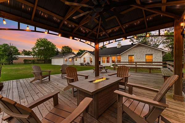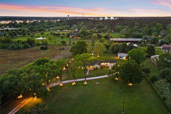 Set on 2.39 unrestricted private acres, this fully renovated 1957 farmhouse blends timeless charm with modern ease. With over $250K in updates, the home carefully preserves its history by showcasing original hardwood floors from Grogan-Cochran Lumber Co., tongue-and-groove walls/ceilings + striking exposed beams. An oversized kitchen island anchors the heart of the home, perfect for everyday living. With 3 beds/3 baths + extra flex space, the layout offers comfortable living inside and out. Surrounded by peaceful, scenic equestrian farms, evenings come alive with unforgettable sunsets by the firepit under the glow of the new gazebo. A 1,600 sqft workshop w/ garage doors offers incredible flexibility for storage, parking, or a future guest house - already plumbed for water/septic and ideal for multi-generational living or income potential. Whole house generator - 2024. Minutes to Hwy 249, The Woodlands, and an easy drive to Bryan/College Station. Zoned to top-rated Magnolia ISD schools.