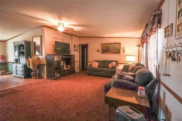 Welcome to a retreat nestled on 13 wooded acres with 365 feet of stunning waterfront. This home features four spacious bedrooms and two full bathrooms, including a primary suite with an adjoining sitting room that can serve as an office or additional living space. The open layout offers a large dining area and a comfortable living room, ideal for gathering and entertaining. Step outside and enjoy the tranquility of nature with breathtaking waterfront scenery that changes with the seasons. Additional highlights include a 24' x 24' detached garage equipped with 110 and 220 electric service and air conditioning, as well as a secure storm shelter for peace of mind. Whether you're looking for a serene homestead or a weekend escape, this property combines comfort, privacy, and natural beauty in one exceptional package.
