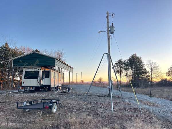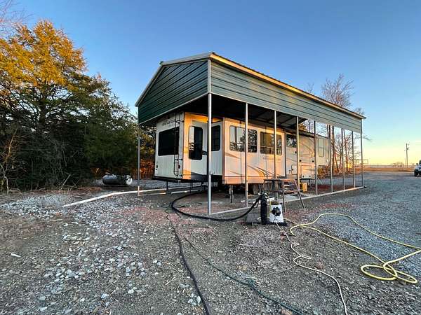 Welcome to Green Hill Escape. This is a 40 acre property that is completely fenced in with brand new barb wire fencing and a survey already done. The posts are set 10 foot on center with 5 strands of wire. There is a 2018 Heritage Glen 40 foot RV with 3 slide outs that will stay. It sits under a carport with a nice gravel drive. The property is easy to get to in any type of vehicle. Electric and Rural water are already hooked up and there is a septic in place. The land is level with a seasonal creek, wooded and open meadow. There are 2 deer stands, a deer feeder and a deer hanger that will stay. With no restrictions and excellent hunting make this your new hunting retreat or build a home and use as a permanent residence. A fenced in area with a covered picnic table sits in the trees for enjoying the outdoors. There is a 40 foot steel container with a shed attached for storage. Located down a dead end gravel road just outside of Talihina in a peaceful and private location. Come check out this beautiful property! You will be happy that you did!