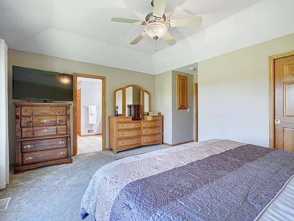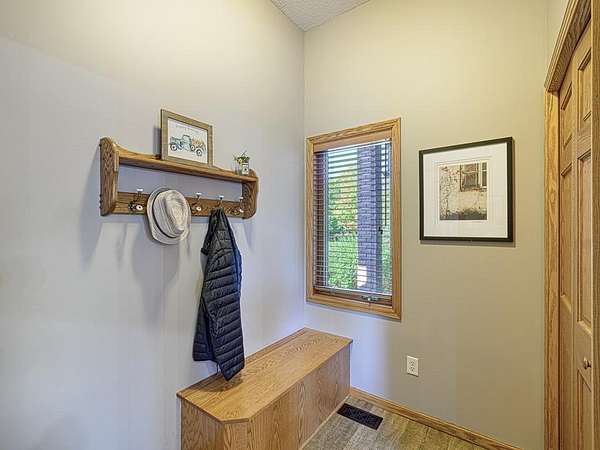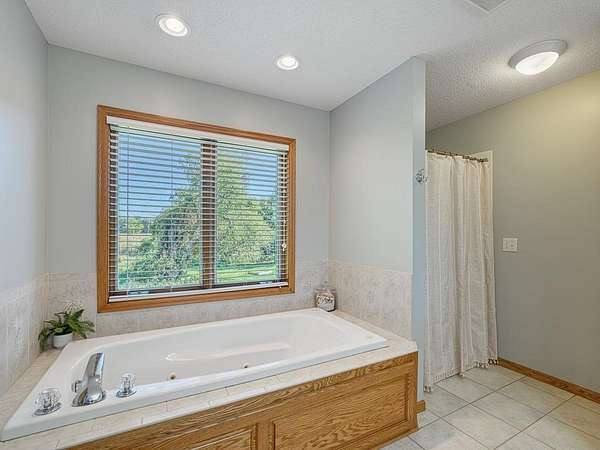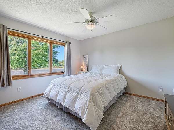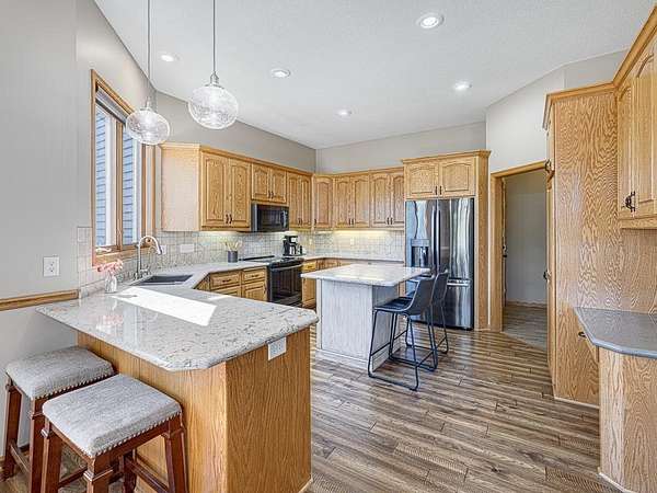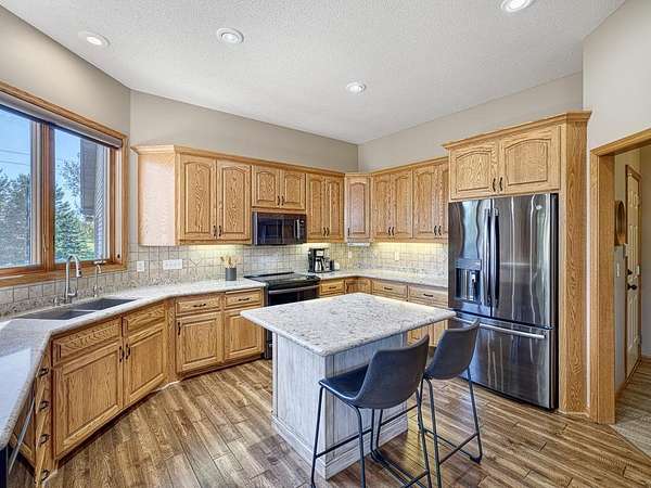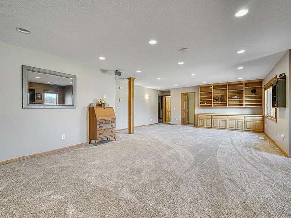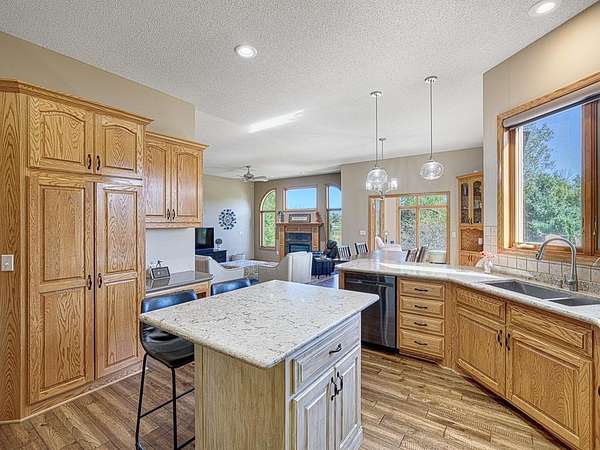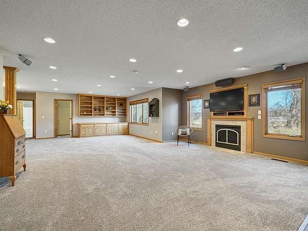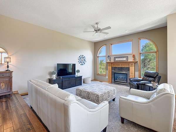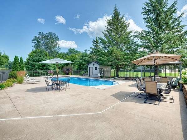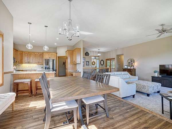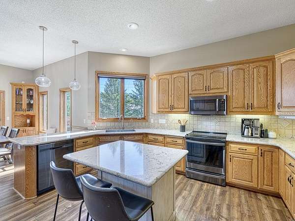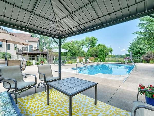 Discover an exceptional opportunity to own a spacious rambler nestled on a generous 10+ acre lot, offering the perfect blend of natural beauty and modern conveniences while being so close to town. This stunning property, situated in a peaceful cul-de-sac, boasts breathtaking views of the surrounding landscape, including a picturesque pond that adds to the serene atmosphere. The expansive lot backs up to Kelsey Round Park, the property offers an extended natural playground right at your doorstep. The home features an open floor plan with 4 bedrooms plus a den, providing flexible living space for various needs. The kitchen boasts a corner sink with a window view, center island, elegant Cambria countertops, stainless steel appliances, and a large pantry cupboard with convenient pull-out shelves. Beautiful HDWD floors flow throughout the main living areas. The sunken living room is a focal point, featuring a cozy gas fireplace and an impressive wall of windows that flood the space with natural light. With 3 full bathrooms, comfort and convenience are assured for the entire family. The primary bedroom is a true retreat, featuring spectacular views, a new window, an elegant tray ceiling, and a large walk-in closet. Its ensuite bathroom offers luxury with a separate jacuzzi tub and shower, as well as dual sinks. An inviting sunroom just off the dining room allows you to enjoy the surrounding fantastic views year-round. While a large 21x18, maintenance-free deck provides the perfect space for outdoor entertaining and relaxation, overlooking the beautiful in-ground pool area and breathtaking views of the back property. The pool has a brand new liner with attractive fencing and landscaping around the pool area. Just think of all the entertaining you will do! The lower level offers a spacious family room, gas fireplace, tons of built-ins and walks out to a very private 15x18 patio area. A spacious 4-car garage with new epoxy floors. PLUS a heated 42x66 pole building ensures ample storage, a possible workshop or a place for all the toys. Close to walking/biking trails at Kelsey Round Lake Park and The Anoka Nature Preserve.