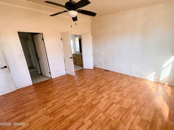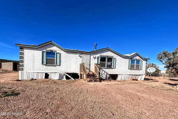 Nestled on approximately 4.72 acres, this 2002 manufactured home offers a spacious and functional layout designed for everyday living. The residence includes 3 bedrooms and 2 bathrooms with an estimated 2,296 square feet of interior space. Laminate flooring runs throughout the home for easy maintenance. The rear of the property is fenced, and the land is mostly level, offering practical outdoor use. State land to the South is easily accessible for riding horses or quads. Located along county-maintained roads, the property combines rural surroundings with proximity to local amenities in Snowflake.