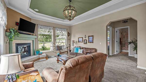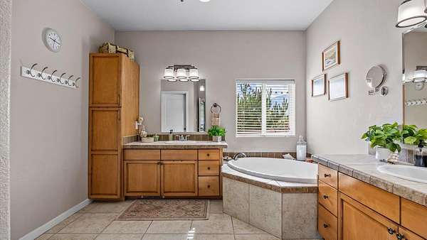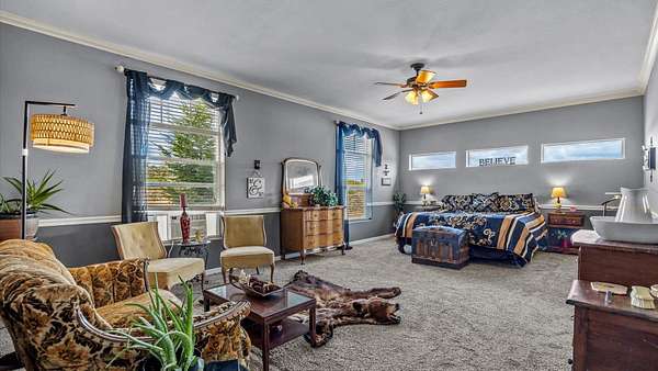 - Ceiling Fans, Garden Tub Roman Tub, Granite Counters, Main Level Primary, Vaulted Ceilings, Walk In Closets, Walk In Shower, Window Treatments