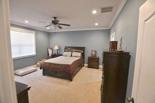 Est $3,009/moCustom built all brick home with 4 bedrooms, office, and 3 full baths on almost 2 acres. The privacy gate leads you to the rocking chair front porch and into an open floor plan with hardwood floors & crown molding; Large living room with custom built-in and plenty of space; Separate dining room with molding and tray ceiling; Eat-in kitchen w breakfast bar, stainless steel appliances, granite counters; Large primary suite with shower, tub, and large closet. Close to schools and shopping. -Room dimensions to be confirmed by buyer, agent is related to seller-
