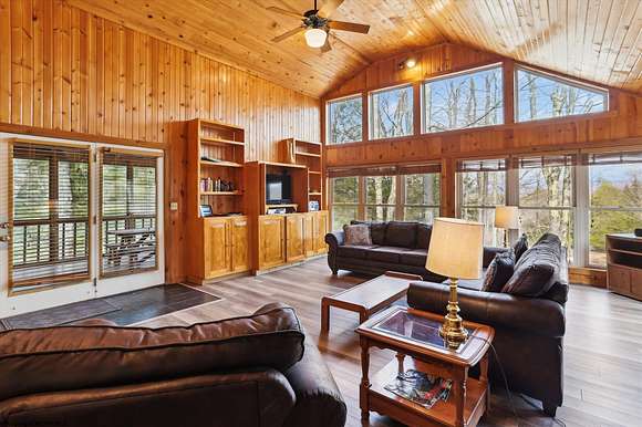 Imagine a cozy cabin nestled in the heart of a serene forest, surround by towering trees and a lush canopy of green. Nestled up against CV Wildlife Refuge property to insure the beautiful view of the CV Refuge and the mountainous backdrop. The lot itself is a beautiful tapestry of wildflowers interspersed with rocky outcroppings and the occasional fallen log. A gentle stream meanders through the property creating a peaceful and serene setting. The perfect getaway. Three bedrooms, with upper and lower great rooms, additional bunkbed space for overnight guests. Fireplace, hardwood ceilings and floors, luxury laminate flooring, updated kitchen and baths with granite showers and countertops. Spacious upper screened in porch and lower deck with private hot tub. Detached 2 car garage and outbuilding. Priced fully furnished. Strong rental history.