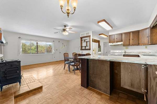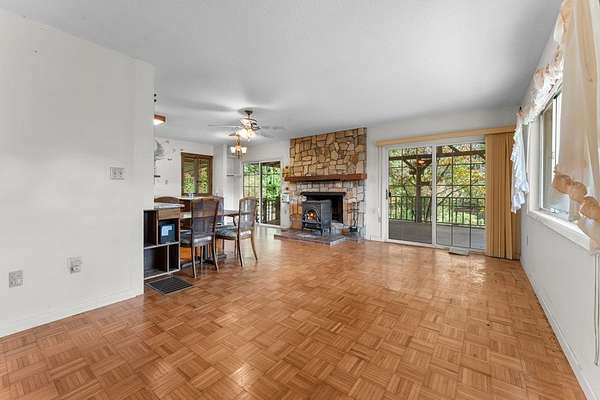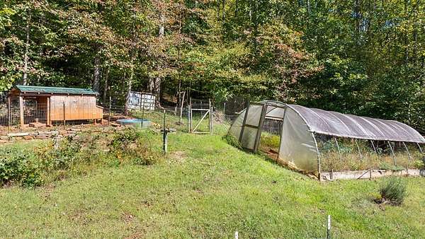 This perfect Homestead offers 6.8 unrestricted acres with a 2-bedroom, 2-bath home and multiple useful outbuildings. Recent updates include a new roof (December). The home features central heating and cooling through a heat pump, along with a wood stove. An attached carport provides covered parking and easy access to the home. A home warranty is being offered by the seller. The lower level includes a finished bonus room suitable for a variety of uses; Home Office, Craft Room. A covered porch extends outdoor living space and offers a mountain view. The land includes a mature orchard, garden areas with creek access for irrigation, a duck pond, chicken coop, high tunnel, and a wood shed. A second cleared area on the property provides a potential site for an additional structure, subject to buyer verification. An existing solar system is on-site and will need maintenance to maximize performance. The location provides multiple access points and is a short drive to town. The property is being sold as-is and is priced accordingly. Don't let this opportunity to create your Homestead pass you by.