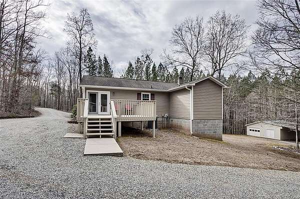 This is a gem located down a long winding driveway to the most immaculate house you'll find. It has 2 bedrooms 2 baths, located on 29 mostly wooded acres. It is secluded with a nice yard, 24 x 20 carport and a wired 24 x 24 workshop. There is plenty room for a nice garden. The house has a nice screened in 38 x 8 front porch and a large 14 x 8 back deck. The kitchen has built in appliances and a slide in refrigerator. Living room with hardwood floors and is open to the dining area. Bedrooms have hardwood floors; primary bath has jacuzzi. There is a partial unfinished basement. The land can be used for hunting, horses, gardening, privacy or recreation. This is a rare find in Randolph County. Driveway is a recorded easement.