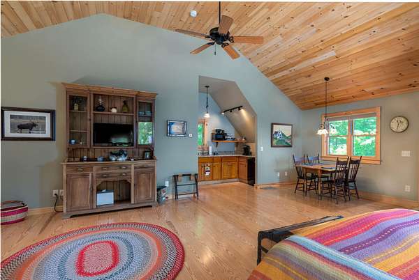 Set along the pristine south shore of Green River Reservoir, Ondine is an extraordinarily rare lakefront estate—one of only four private residences on a 5,500-acre protected expanse within Green River Reservoir State Park. Encompassing 15.9± acres with an exceptional 1,000 feet of shoreline, this secluded retreat offers unmatched tranquility on Vermont’s largest non-motorized lake, where quiet waters invite kayaking, sailing, and reflection. Thoughtfully designed as a multi-residence compound, the estate includes four furnished and fully independent living quarters: a distinctive octagonal main house with three bedrooms, a guest house with lofted accommodations, a guest apartment, and a studio—each with private systems, kitchens, and climate control. Two heated two-car garages, twin barns with extensive equipment, and a well-appointed boathouse complete the offering, while a private beach and boat launch frame the shoreline. Despite its peaceful isolation, everyday conveniences in Morrisville are just 10 minutes away, with the renowned dining and boutiques of Stowe a short drive beyond, and Burlington International Airport within easy reach. Currently operated as a successful luxury rental, Ondine presents a singular opportunity to own a legacy waterfront estate.