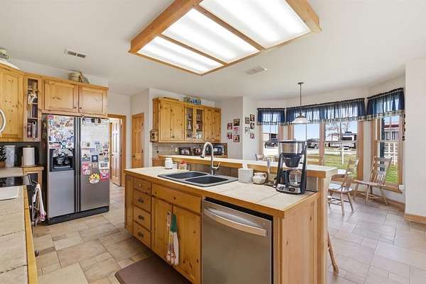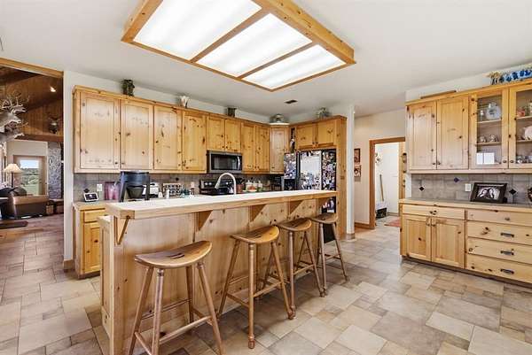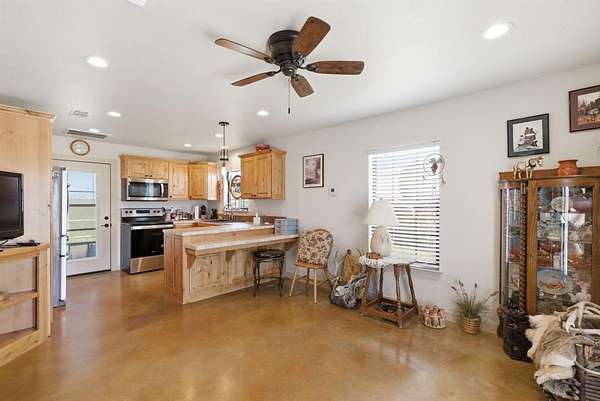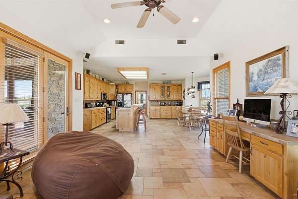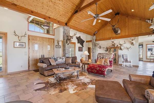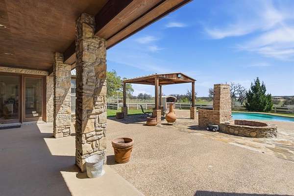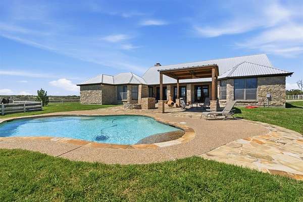 Set on 47+ picturesque acres, this well-appointed ranch property offers the perfect blend of comfort, functionality, and country charm. The 3 bedroom, 3.5 bath rock home features beautiful custom rock and woodwork throughout, highlighting a timeless rustic ranch style with quality craftsmanship. The property also features a 960 sq ft mother-in-law suite, built in 2021, providing a private 1-bedroom, 1-bath space ideal for guests or extended family. The property is well equipped for livestock and horses featuring a 25x32 barn with 2 large stalls and a climate controlled tack room, including a large 36x36 slabbed shop with roll-up doors and 15 ft shed extensions on both sides. Located behind the barn are pipe working pens, and a round pen. Additional improvements include pipe fencing along the driveway and surrounding the yard, a water well, and a beautiful in-ground swimming pool with a gorgeous patio to enjoy the peaceful ranch setting. This versatile property offers the space and infrastructure to support a working ranch or a private country retreat.