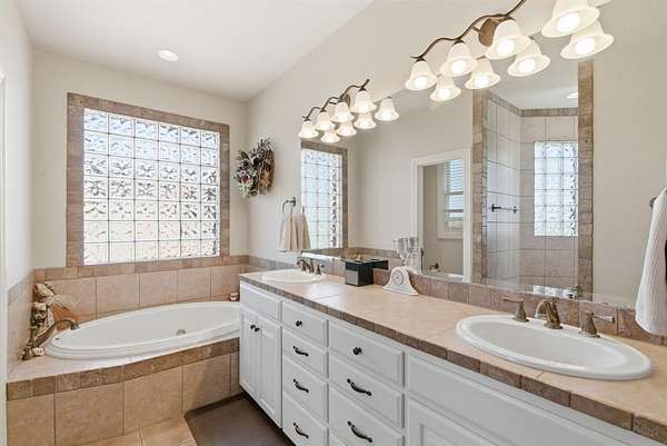 - Decorative Lighting, Double Vanity, Eat-In Kitchen, High Speed Internet Available, Kitchen Island, Natural Woodwork, Open Floorplan, Pantry, Tile Counters, Vaulted Ceiling(s), Walk-In Closet(s), Wired For Data