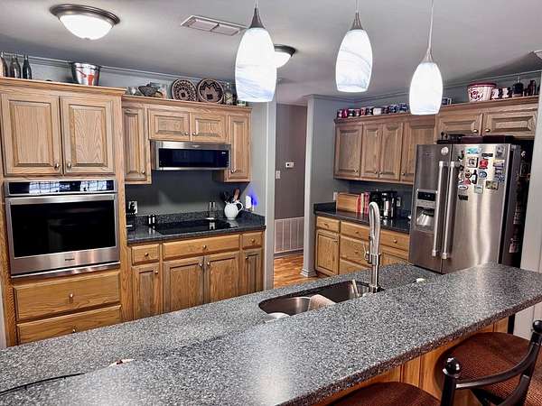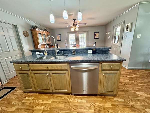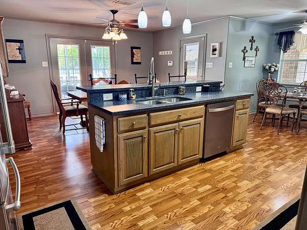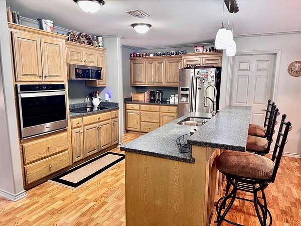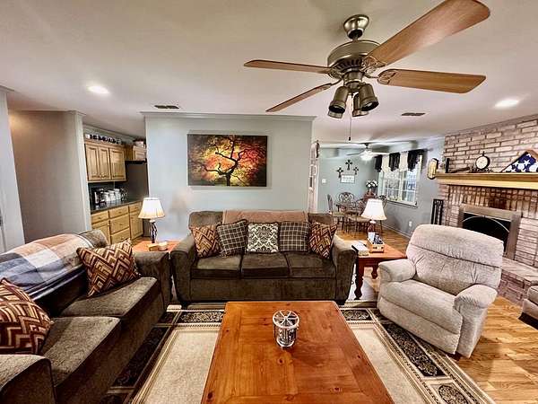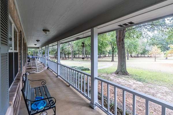 Charming, traditional home near the Texas State Railroad Park. Discover your dream property in this uniquely secluded area just a few miles from town. Nestled on 5 acres of picturesque land, this 3-bedroom, 2-bath brick house offers an idyllic retreat with stunning views. Enjoy a cozy living space featuring a wood burning fireplace, perfect for family gatherings. The home boasts wood laminate flooring throughout the main areas, adding warmth and character. The kitchen is equipped with stainless steel appliances, including a built-in microwave, cooktop, and separate oven. The deep double sinks, breakfast bar, and abundant custom ash cabinets, complemented by composite countertops, make this kitchen a chef's delight. A breakfast area and additional space for a dining table are open to the kitchen ensuring plenty of room for entertaining guests. Retreat to the spacious primary bedroom with 2 walk-in closets and an ensuite bath featuring a separate tub and shower, providing a private oasis for relaxing. Both additional rooms offer oversized closets and plush carpet for added coziness. Step outside to enjoy a wrap-around porch, a detached garage, and an above-ground pool with a deck.