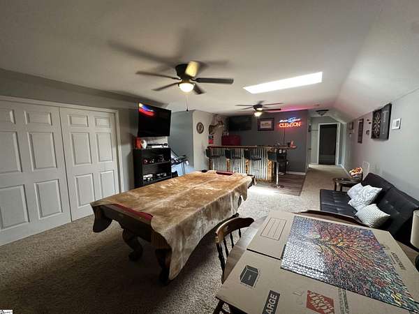 CONTINUE TO SHOW. Marketed by Jason Boozer, NorthGroup Real Estate, 864.414.8008 NO HOA. This home sits a 2.19 ACRE LOT that borders the Saluda River. The main level consists of 3 bedrooms and 2 1/2 baths. The upper level has an extra bedroom and full bath and a large game room (15x26). Both of these rooms have skylights. Smooth ceiling throughout the house and a walk in laundry room. The kitchen has granite countertops, a large center island and a new smooth top stove.. The large garage has a workshop area.