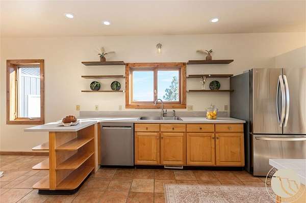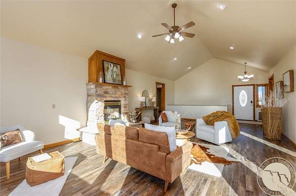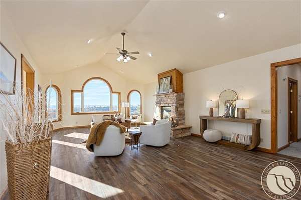 Welcome to 4040 Mountain View Road, an exceptional property offering unobstructed mountain views in every direction. Situated on 19 scenic acres just minutes from Billings and Laurel, this home is ideal for those who value privacy, space, and wide-open Montana living. The main level features a bright living room with vaulted ceilings, gas fireplace & large windows designed to capture the surrounding views. The kitchen includes quartz countertops and flows seamlessly into the living and dining areas. Upstairs offers a private primary bedroom with walk-out access, along w/two additional bedrooms. The lower level includes a spacious family room, bedroom, large laundry area & ample storage. The detached two-car garage provides functionality, w/plenty of room on the property for future expansion or a shop. A rare opportunity to own acreage, views, and convenience in a peaceful setting.