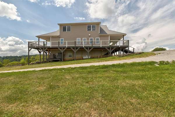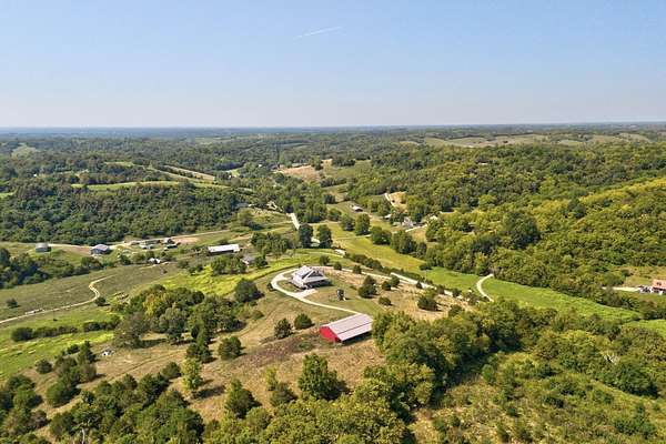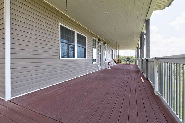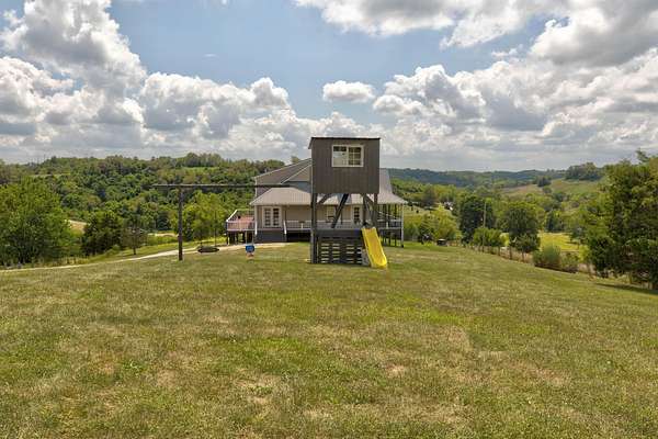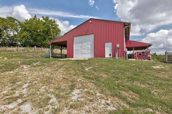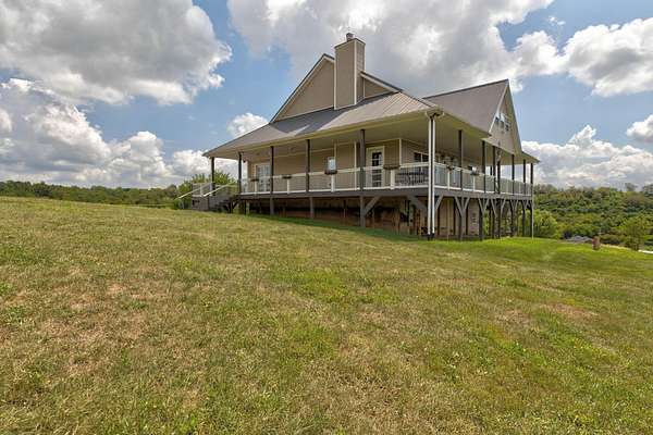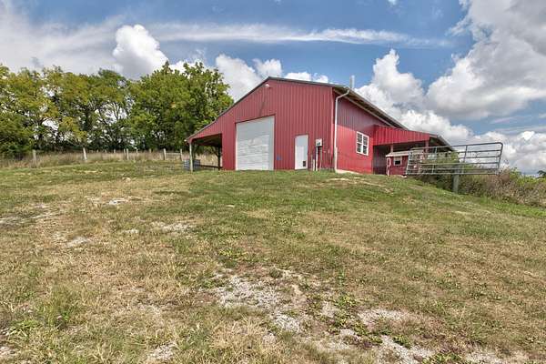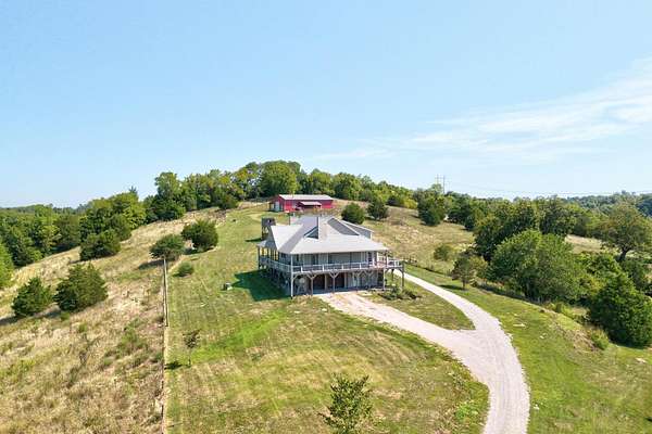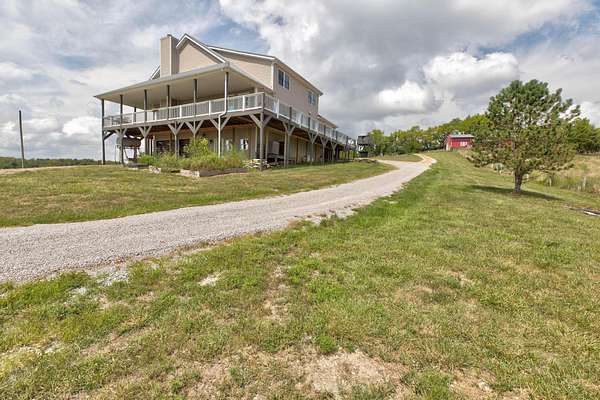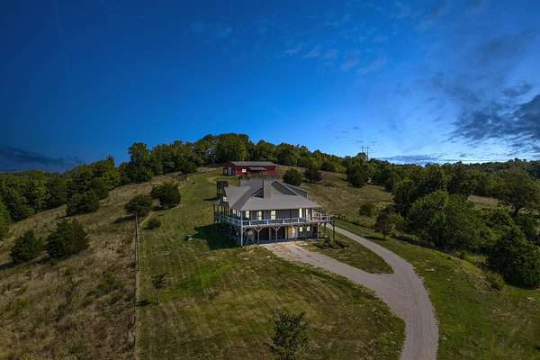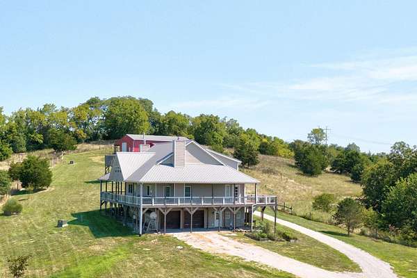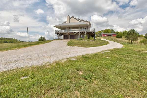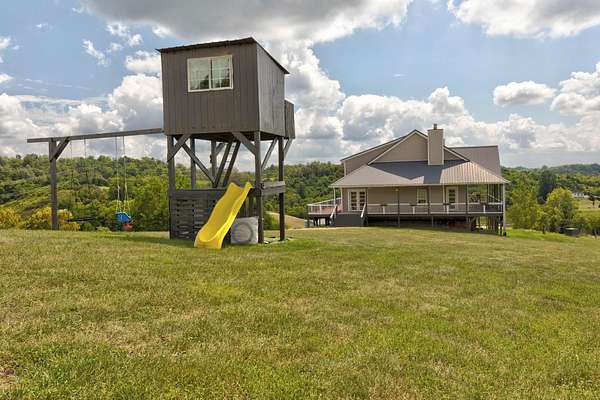 A Farmhouse Retreat with Timeless Craftsmanship on 13.6 Acres Nestled on 13.6 rolling acres in Clark County, this custom built farmhouse captivates with soaring tongue-and-groove ceilings, rich woodwork, and thoughtful craftsmanship that sets this home apart. Oversized doors, custom cabinetry, and detailed finishes showcase the quality throughout, while two wood-burning fireplaces with homemade cherry wood mantles add warmth and character to the living spaces. The main-level primary suite features a decorative wooden ceiling, dual walk-in closets, a spa-inspired bath with a spacious double shower, and a freestanding soaking tub. The expansive kitchen and open-concept design makes the home perfect for gathering, while the composite wraparound porch-measuring more than 2,100 sq. ft. across all four sides-provides the perfect vantage point to enjoy breathtaking sunrises and sunsets The second level adds remarkable versatility with two bedrooms, each with large walk-in closets, a full bathroom with shower, and a generous open play area beneath striking pine wood tongue and grove ceilings.. A dedicated home office with gorgeous elevated views makes remote work convenient. Surrounding three sides of the home, a spacious attic storage area ensures ample room for organization. The newly finished basement extends the home's versatility with a complete second living area, including a full kitchen, living room, bedroom, bath, and private entranceideal for extended family, guests, or rental potential. Outdoors, the property offers exceptional amenities for both recreation and function. A two-story treehouse with slide and climbing wall provides a unique retreat for play or relaxation, perfectly complementing the serene setting . The centerpiece is a thoughtfully designed insulated metal barn, built with 2x6 framed walls and a truss-supported roof for lasting durability. One side houses a secure chicken coop with covered run, while a 14-foot-wide lean-to spans the full length of the barnideal for livestock shelter or working area. This versatile structure has its own electrical service and can serve as a workshop, storage space, agricultural hub, or indoor recreation during the winter months, offering endless possibilities for the next owner. The acreage is fully fenced with high-tensile woven wire and thoughtfully divided into four separate fields, making rotational grazing both practical and efficient. This setup supports a variety of livestock and enhances the property's potential as a working farm, hobby homestead, or versatile country estate