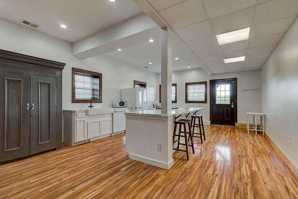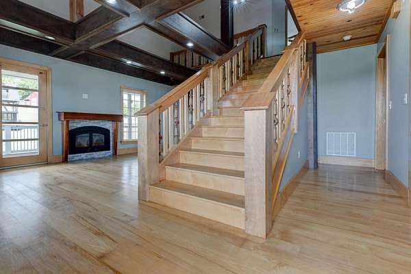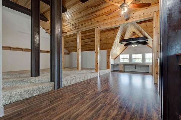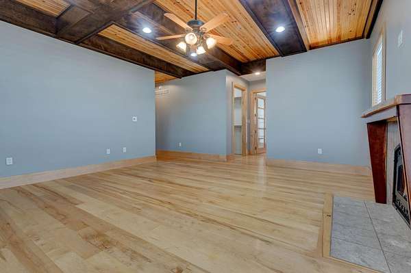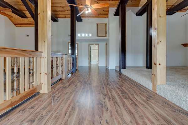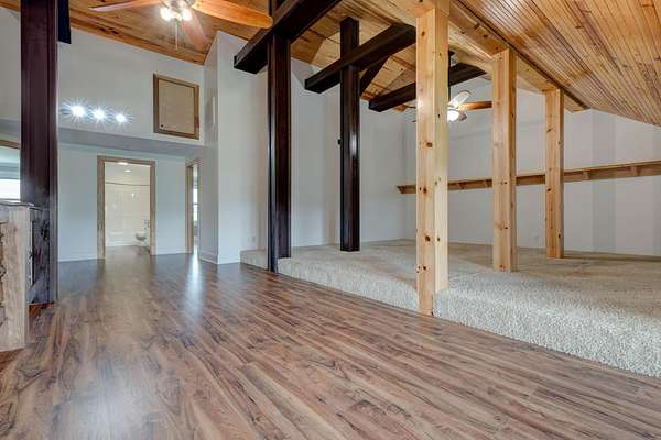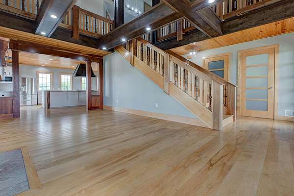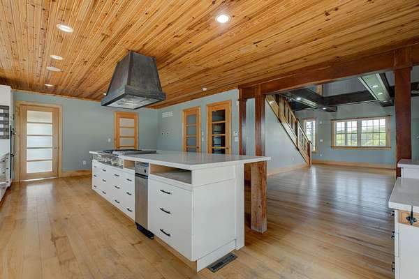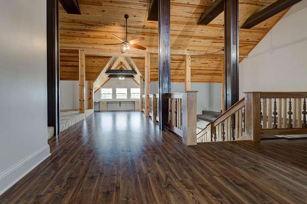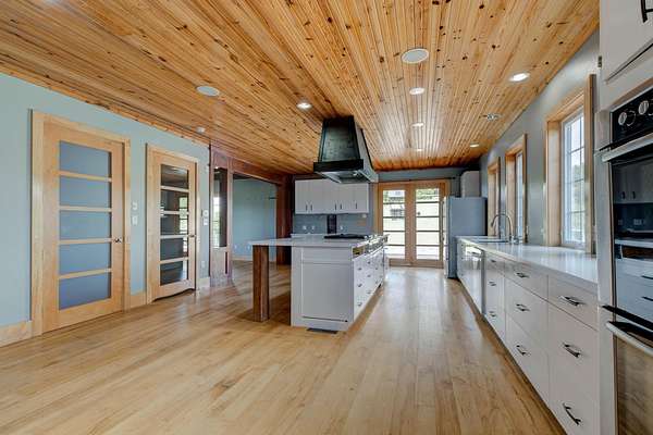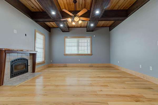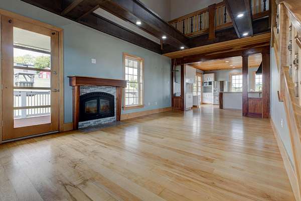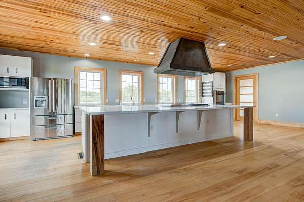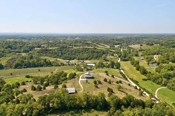 A Farmhouse Retreat with Timeless Craftsmanship on 13.6 Acres Nestled on 13.6 rolling acres in Clark County, this custom built farmhouse captivates with soaring tongue-and-groove ceilings, rich woodwork, and thoughtful craftsmanship that sets this home apart. Oversized doors, custom cabinetry, and detailed finishes showcase the quality throughout, while two wood-burning fireplaces with homemade cherry wood mantles add warmth and character to the living spaces. The main-level primary suite features a decorative wooden ceiling, dual walk-in closets, a spa-inspired bath with a spacious double shower, and a freestanding soaking tub. The expansive kitchen and open-concept design makes the home perfect for gathering, while the composite wraparound porch-measuring more than 2,100 sq. ft. across all four sides-provides the perfect vantage point to enjoy breathtaking sunrises and sunsets The second level adds remarkable versatility with two bedrooms, each with large walk-in closets, a full bathroom with shower, and a generous open play area beneath striking pine wood tongue and grove ceilings.. A dedicated home office with gorgeous elevated views makes remote work convenient. Surrounding three sides of the home, a spacious attic storage area ensures ample room for organization. The newly finished basement extends the home's versatility with a complete second living area, including a full kitchen, living room, bedroom, bath, and private entranceideal for extended family, guests, or rental potential. Outdoors, the property offers exceptional amenities for both recreation and function. A two-story treehouse with slide and climbing wall provides a unique retreat for play or relaxation, perfectly complementing the serene setting . The centerpiece is a thoughtfully designed insulated metal barn, built with 2x6 framed walls and a truss-supported roof for lasting durability. One side houses a secure chicken coop with covered run, while a 14-foot-wide lean-to spans the full length of the barnideal for livestock shelter or working area. This versatile structure has its own electrical service and can serve as a workshop, storage space, agricultural hub, or indoor recreation during the winter months, offering endless possibilities for the next owner. The acreage is fully fenced with high-tensile woven wire and thoughtfully divided into four separate fields, making rotational grazing both practical and efficient. This setup supports a variety of livestock and enhances the property's potential as a working farm, hobby homestead, or versatile country estate