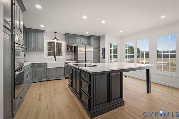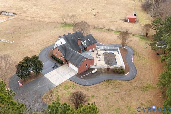 Welcome to your dream homestead on 17 SCENIC ACRES in Amelia County! This pristine 5 Bed, 3.5 bath Cape Cod blends modern luxury & country living, offering a sparkling in-ground SALT-WATER POOL, luxurious FIRST FLOOR PRIMARY SUITE & 6-CAR GARAGE. Privately set on 3 fenced grazing pastures, this property is ready for horses, cattle or goats. A paved track winds the grounds-perfect for jogging, biking, or Go-karts-with 55 fruit trees & 150 solar security lights for peace of mind. Enter the home on gleaming refinished hardwood floors to a Formal Living room w/ crown molding, French doors & dramatic arched windows, a large Formal Dining room w/ French doors & chandelier, & a stunning RENOVATED KITCHEN w quartz counters offers breathtaking views of open country. The large family room w/ updated fireplace is perfect for cozy evenings. A sprawling First Floor Primary offers SPA-LIKE ENSUITE bath & huge walk in closet w built-ins. Upstairs you'll find a 2nd PRIMARY SUITE w/ walk-in closet, 2 additional bedrooms, HOME OFFICE & hall bath. Step outside on TREX DECKING to a PAVED PATIO w/ in-ground saltwater pool w/ NEW LINER & diving board. THREE 2-CAR GARAGES (attached & detached) offer parking for up to SIX CARS-all with power & internet. Additional highlights include NEW HVACs, NEW WHOLE HOUSE GENERAC GENERATOR, NEW well pumps & hot water heater, Encapsulated Crawl space, Updated baths, Anderson windows & lighting. Just a short drive from Midlothian, this private oasis is a rare gem you must see in person!