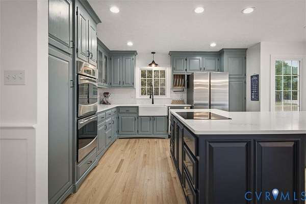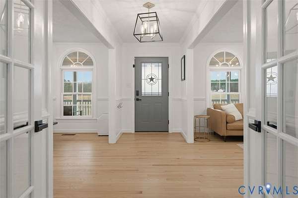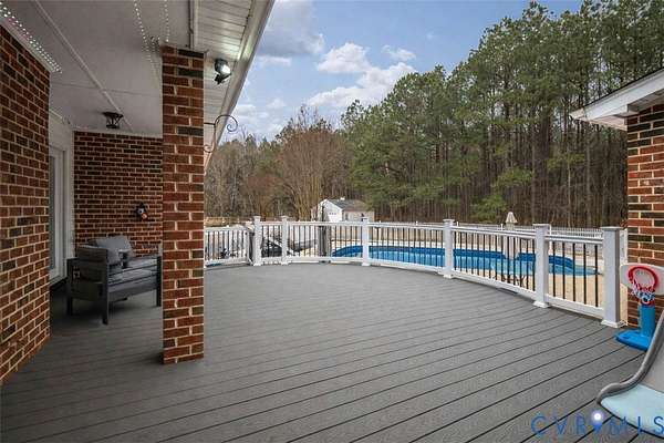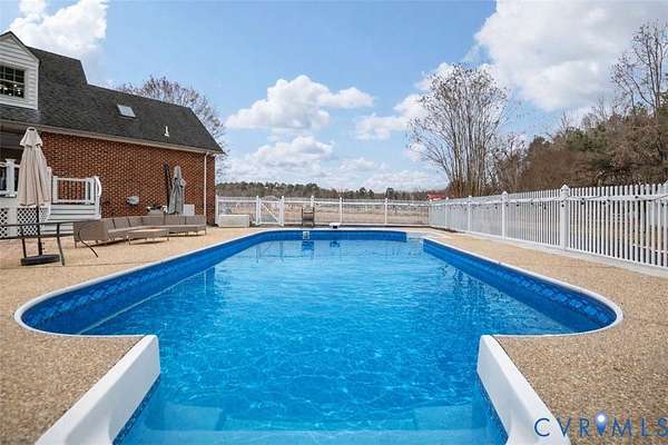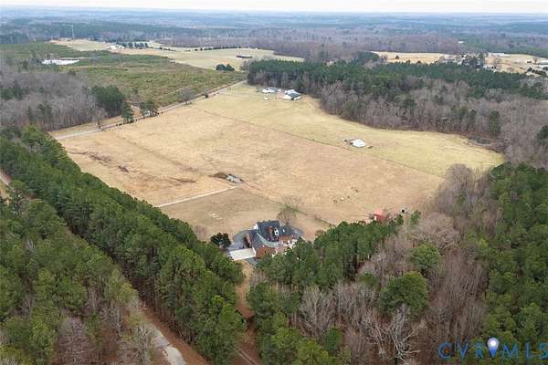 Welcome to your dream homestead on 17 SCENIC ACRES in Amelia County! This pristine 5 Bed, 3.5 bath Cape Cod blends modern luxury & country living, offering a sparkling in ground SALT-WATER POOL, luxurious FIRST FLOOR PRIMARY SUITE & 6-CAR GARAGE. Privately set on 3 fenced grazing pastures, this property is ready for horses, cattle or goats. A paved track winds the grounds perfect for jogging, biking, or Go-karts with 55 fruit trees & 150 solar security lights for peace of mind. Enter the home on gleaming refinished hardwood floors to a Formal Living room w/ crown molding, French doors & dramatic arched windows, a large Formal Dining room w/ French doors & chandelier, & a stunning RENOVATED KITCHEN w quartz counters offers breathtaking views of open country. The large family room w/ updated fireplace is perfect for cozy evenings. A sprawling First Floor Primary offers SPA-LIKE ENSUITE bath & huge walk in closet w built-ins. Upstairs you'll find a 2nd PRIMARY SUITE w/ walk-in closet, 2 additional bedrooms, HOME OFFICE & hall bath. Step outside on TREX DECKING to a PAVED PATIO w/ in-ground saltwater pool w/ NEW LINER & diving board. THREE 2-CAR GARAGES (attached & detached) offer parking for up to SIX CARS all with power & internet. Additional highlights include NEW HVACs, NEW WHOLE HOUSE GENERAC GENERATOR, NEW well pumps & hot water heater, Encapsulated Crawl space, Updated baths, Anderson windows & lighting. Just a short drive from restaurants and shopping, this private oasis is a rare gem you must see in person!