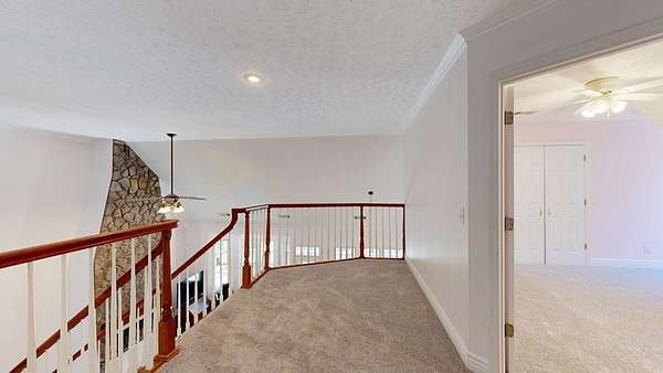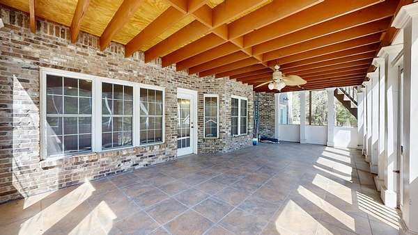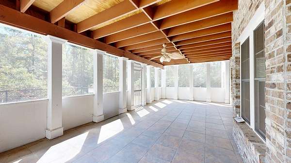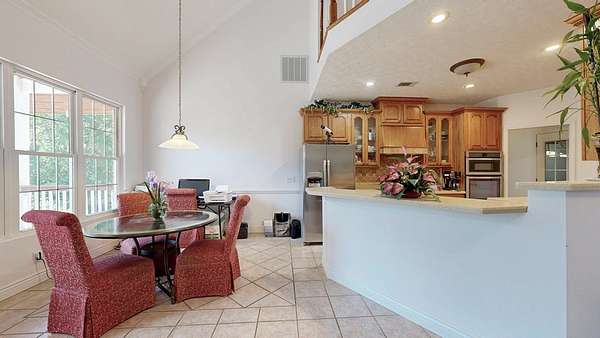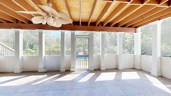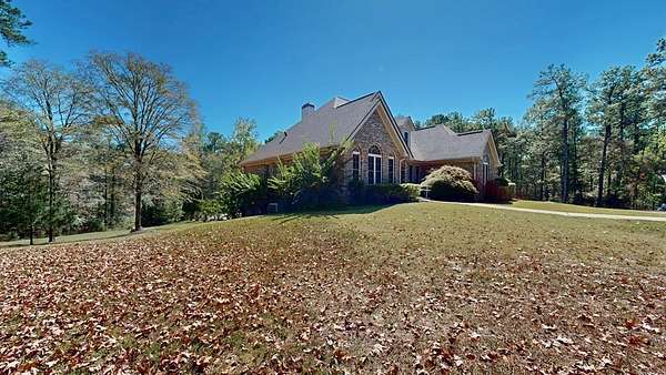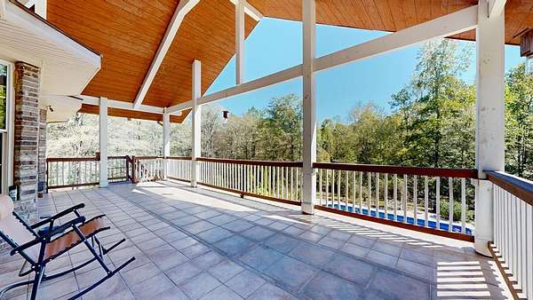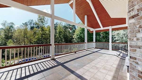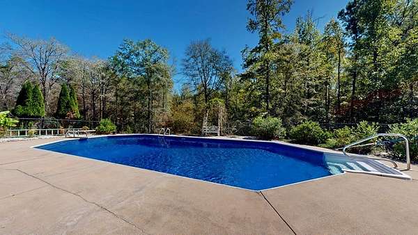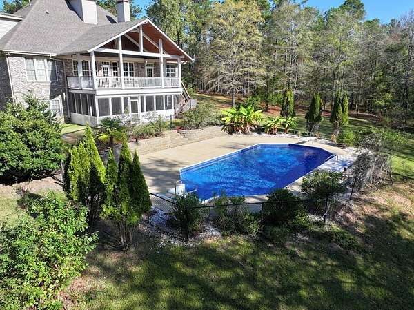 Secluded within a private community, this 3-story brick estate rests on 6.79 acres, offering 5,344 sq. ft. of living space, an inground saltwater pool, and unmatched privacy. Step inside to a welcoming foyer flanked by a front vaulted den/office and separate dining room, leading to a 2-story living room with a gas fireplace and access to a vaulted, covered deck overlooking the pool and spacious backyard. The open-concept eat-in kitchen features Corian countertops, stainless steel appliances, a raised breakfast bar. Wood and tile floors run throughout the main level for a cohesive look. The main-level primary suite boasts a tray ceiling, and private porch access. The ensuite includes a jetted tub, tile shower, double vanity, and walk-in closet. A split floorplan provides a main-level guest suite with its own walk-in closet and full bath. The main level also includes a laundry room and 2-car garage. Upstairs, find two bedrooms with walk-in closets and Jack-and-Jill bath, plus flex room and walk-in attic storage. The walk-out basement expands the living space with a family room with wood-burning fireplace; a rough-plumbed kitchen area; fifth bedroom with ensuite bath and XL walk-in closet; plus, a media room; hobby/home school room; and storage room. Step out to the screened porch and fenced pool area; perfect for outdoor living. The main level also includes a laundry room and 2-car garage. This home is a true family retreat designed for everyday living and exceptional gatherings.