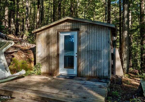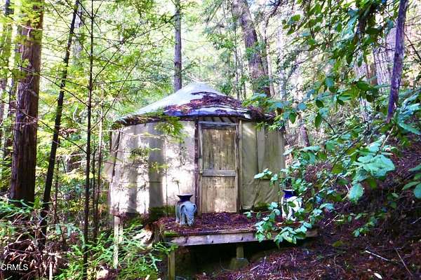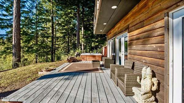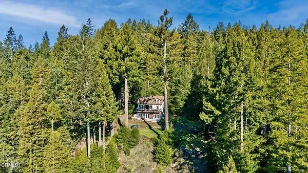 Perched above a sweeping canopy of trees, "Chateau La Rose" offers the rare feeling of complete seclusion--where sky, forest, and horizon stretch endlessly in every direction. Escape to this serene retreat with a private tree-top panorama where you can imagine being the only person on the planet. Mornings arrive with glowing sky and birdsong and evenings end in a bubbling hot tub beneath vivid sunsets or around a bonfire under a galaxy of stars. The reimagined first level garage conversion is now a spacious bedroom with double French doors and deck access. Nearby, is a convenient bathroom with tiled shower, laundry and quartz-topped sink vanity. Just upstairs, the main living level unfolds into a bright, open floor plan with an efficient kitchen, two additional bedrooms, and a full bath. Roomy and light filled with floor-to-ceiling windows, the open floor plan of the 2nd floor is a wonderful spot for entertaining and relaxing. Natural light floods every corner creating an appealing indoor/outdoor aesthetic. The upper balcony is telescope-worthy with ample space for lounging and enjoying outdoor dining while experiencing the ever changing sky. Explore the property's winding network of former logging trails to discover a storybook artist's studio complete with an outdoor shower and loft resting nook. Tucked deeper into a mysterious corner of the woods, a hidden yurt awaits the adventurous of spirit. With 10 private acres to explore, this land invites hiking, reflection, and connection with nature at every turn. Pilots will appreciate the property's proximity to Little River Airport just 2.5 miles away, while the ocean, Little River Store, and fine dining are only five miles from the home with Historic Mendocino Village just minutes beyond. Chateau La Rose is a property that offers both true solitude and easy access to everything that makes the Mendocino Coast special. It is home for those who value space, views, and a sense of being wonderfully removed from it all.