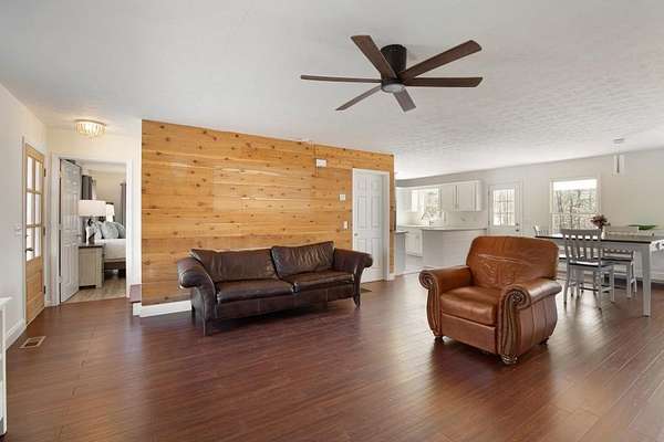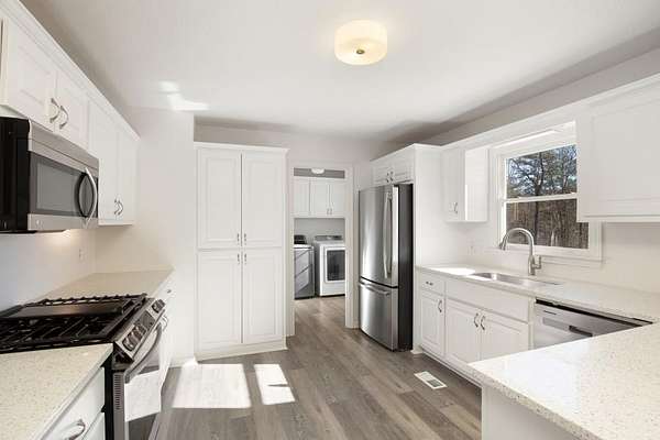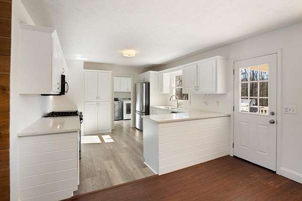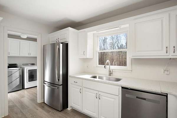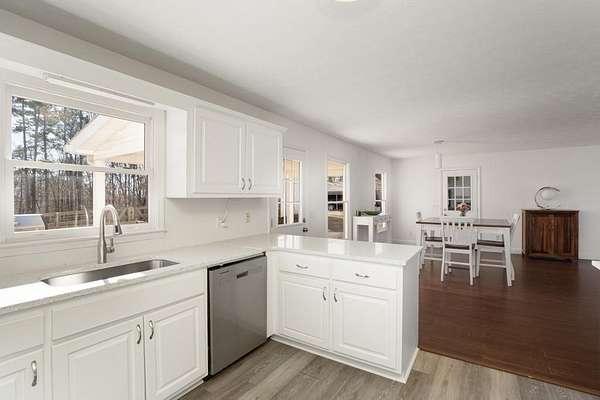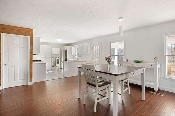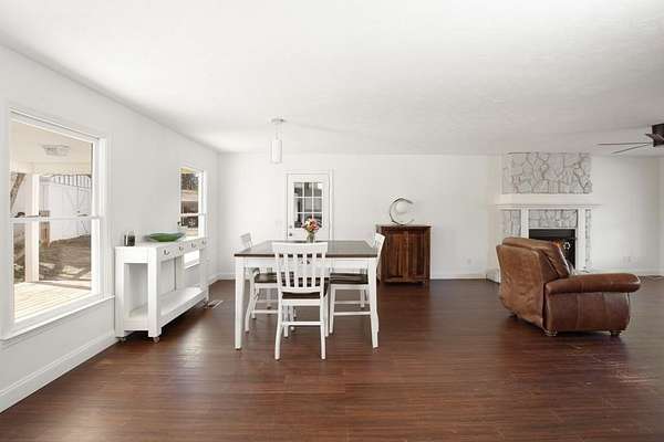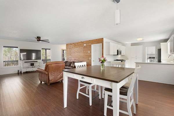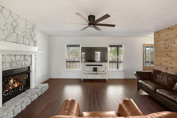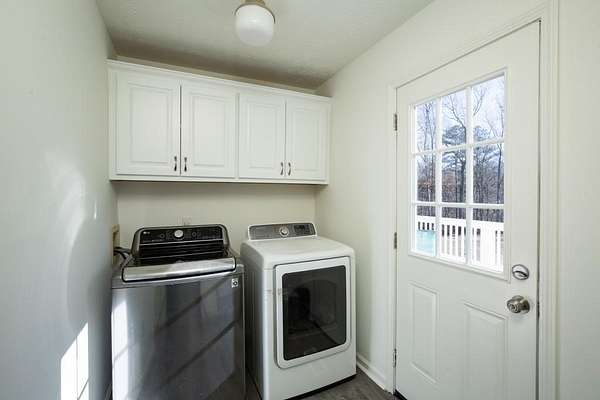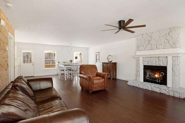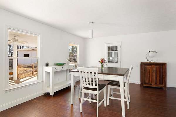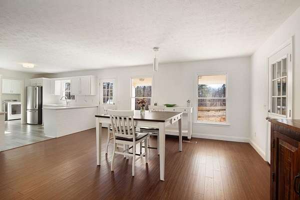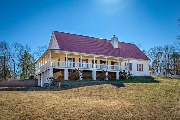 Welcome to this beautiful farmhouse retreat nestled on 2 peaceful acres, offering the perfect blend of country living with easy access to nearby city conveniences. Featuring sprawling wrap-around porches and tranquil views, this property invites you to enjoy outdoor living, gardening, and even keeping chickens a true homesteader's delight! This home presents a metal roof, newer porches, newer well and HVAC systems for simple living. Step inside to discover fresh interior paint and trim, hardwood laminate floors throughout the main level, brand new carpet upstairs, new lighting and much more! The heart of this home is the charming kitchen, complete with crisp white cabinetry, solid surface countertops, a stainless steel farmhouse sink, 5-burner cooktop, oven, microwave, and dishwasher perfect for the chef who loves to entertain or just "be" at home where relaxation abounds! Adjacent to the kitchen is a spacious laundry room, adding convenience to everyday chores. Enjoy your morning meals in the inviting breakfast/dining area, or relax in the sun-filled family room, where an impressive stone fireplace serves as a warm and welcoming focal point. This room is further enhanced by a cedar accent wall and a newly stained wood front door that brings the outdoors in. Upstairs you'll find two additional bedrooms, a large guest bath, and a bonus room all with new carpet for comfort and style. The unfinished basement, with boat door & stubbed for a bath, is ready for your finishing touches. The expansive backyard is level and ideal for all of your outdoor entertaining needs, play or gardening ~ you are just minutes from dining, shopping, parks, GA 400, the North GA Premium Outlet Mall, Cumming City Center ~ you will love living here!